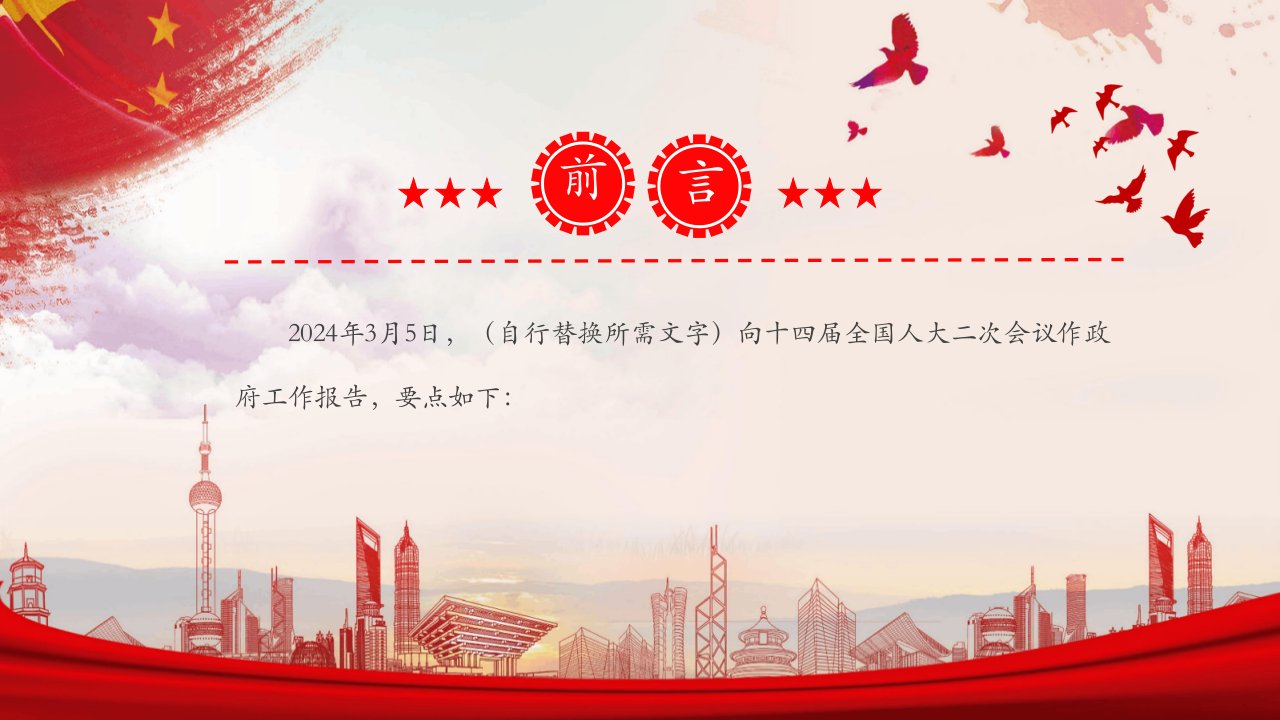极简版数读2024政府工作报告 党课ppt模板(带内容)党支部团支部党员干部学习党课课件 大气精美全国两会专题微党课ppt