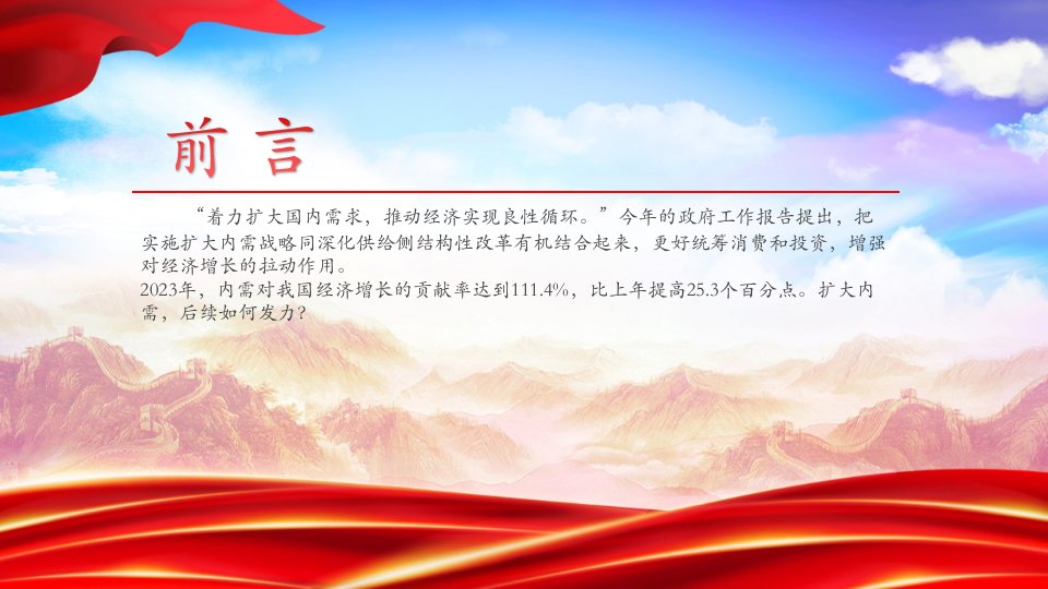 党课ppt模板(含配套讲稿)2024扩大内需今年如何发力党支部团支部党员干部学习党课课件全国两会关键词