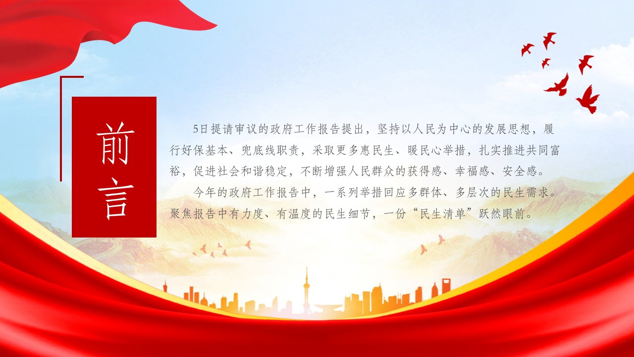 2024两会 党课ppt模板(含配套讲稿)党员干部学习党课课件聚焦政府工作报告中的“民生清单” 红色华美全国两会 专题党课ppt