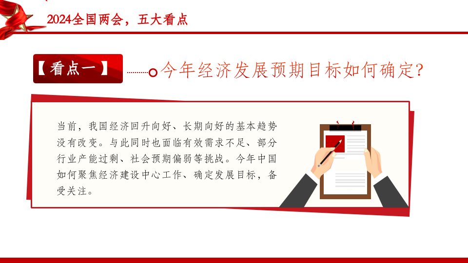 ppt党课模板2024两会党政五大看点党课ppt模板(含配套讲稿)党支部团支部党员干部学习党课课件