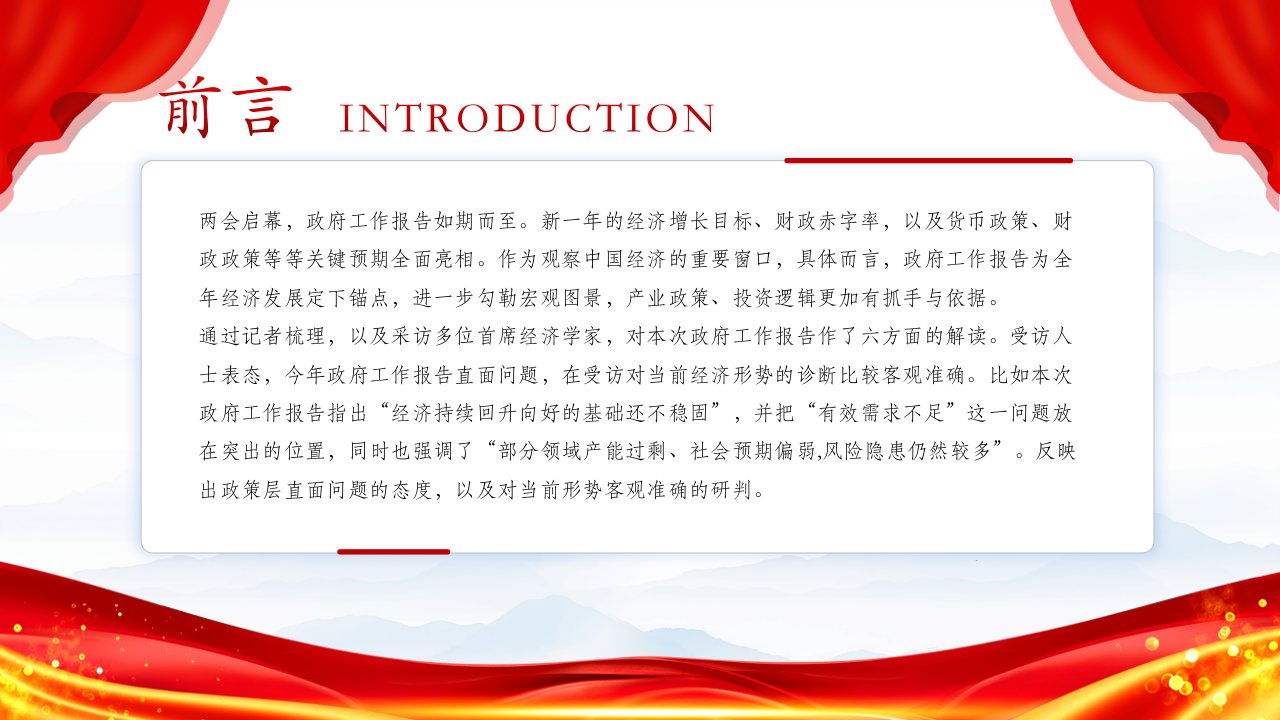 聚焦两会六大亮点看2024政府工作报告党课ppt模板(带内容)党支部团支部党员干部学习党课课件大气简洁两会专题微型党课ppt