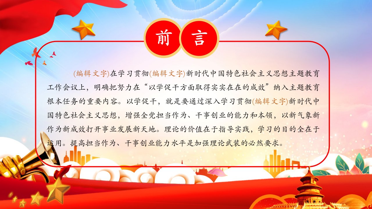 2024微党课以学促干担当有为创伟业党课ppt模板(带内容)党支部党课ppt模板下载学习贯彻新时代中国特色社会主义思想主T教育