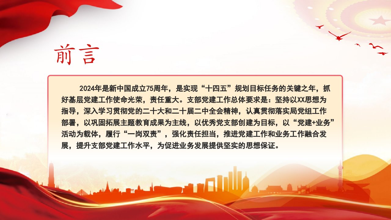 2024党支部党建工作计划精美党建总结计划党课ppt模板(含配套讲稿)党支部团支部党员干部学习党课课件