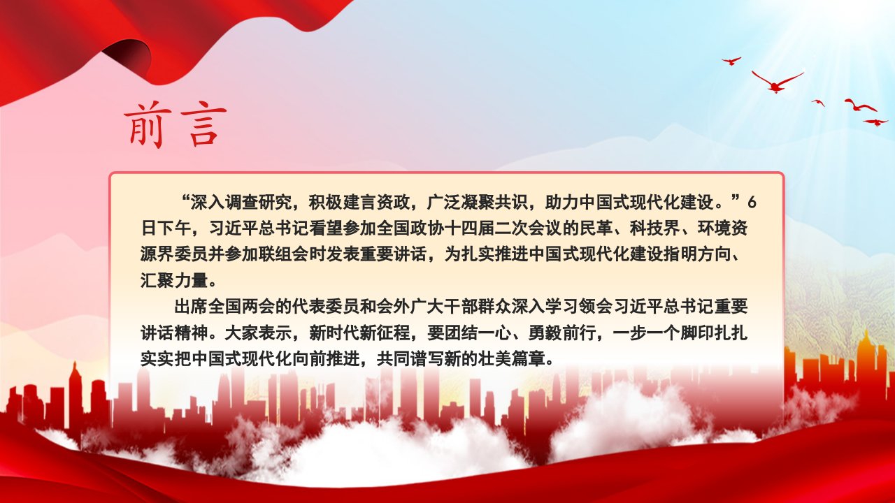 2024习近平总书记在民革科技界环境资源界联组会上的重要讲话党课ppt模板(含配套讲稿)党员干部学习党课课件红色创意共同谱写中国式现代化建设的新篇章