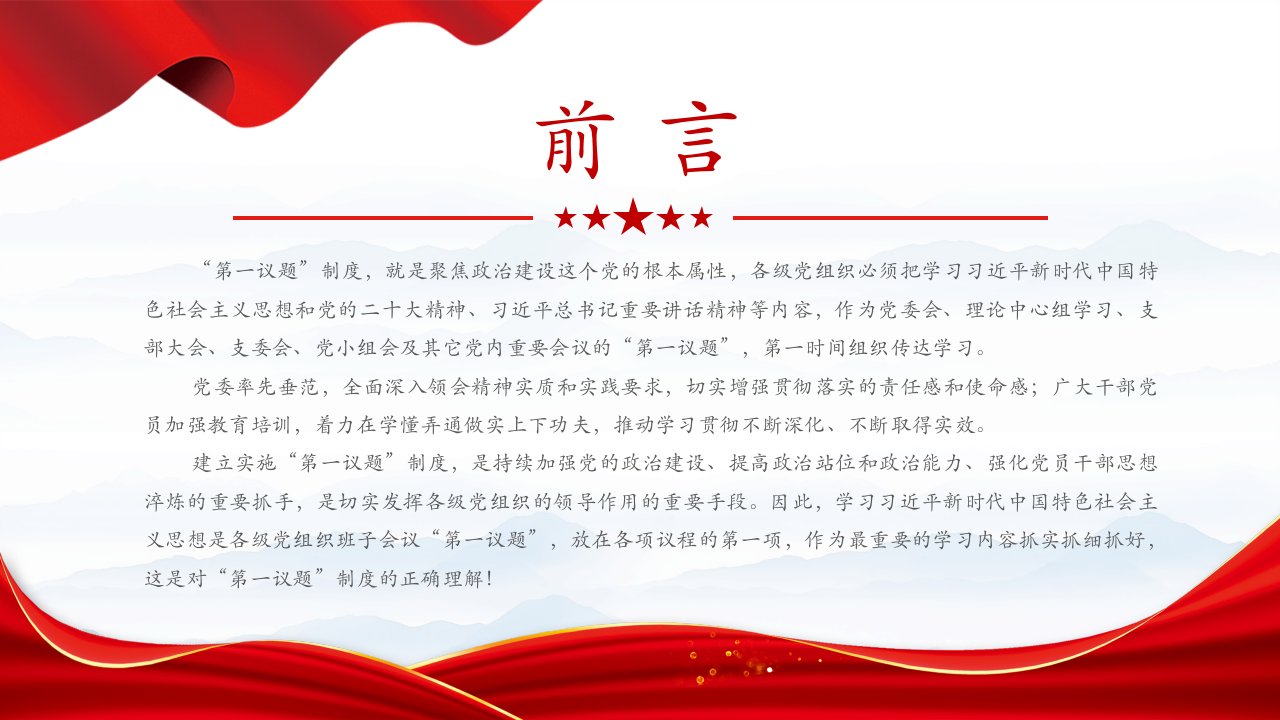 第一议题制度2024党课ppt模板(含配套讲稿)党支部团支部党员干部学习党课课件持续加强党的政治建设