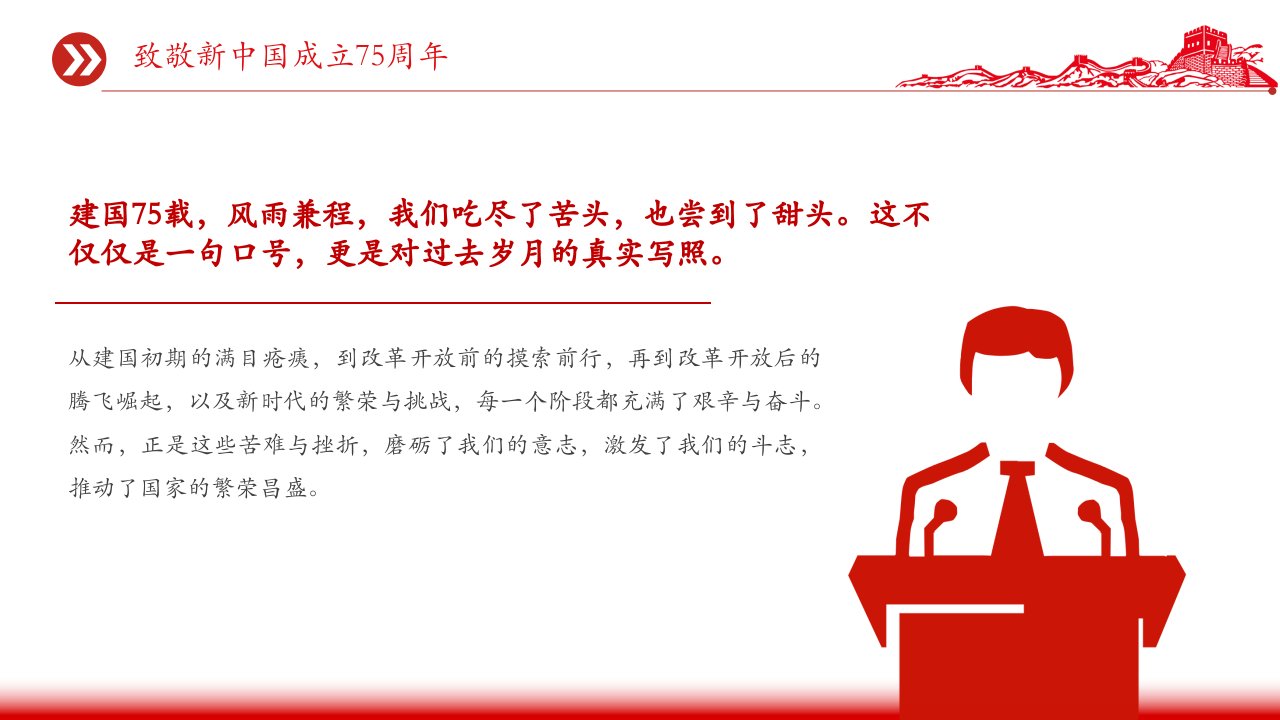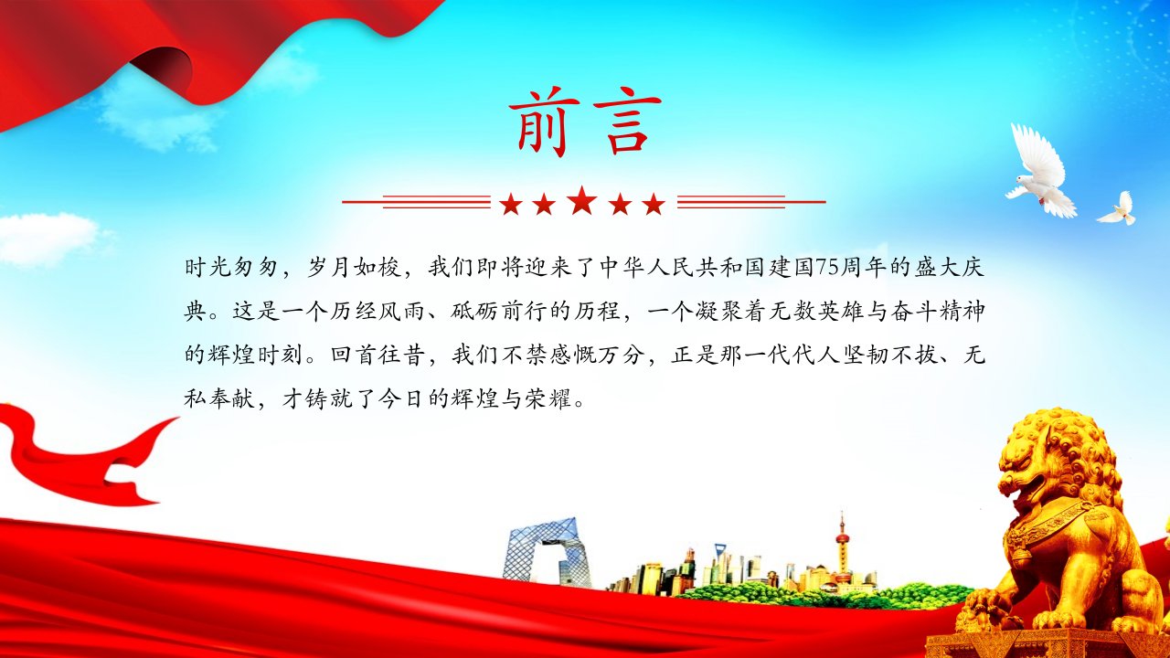 2024年致敬新中国成立75周年国庆节爱国主义教育课件党课ppt模板(含配套讲稿)党员干部学习党课课件