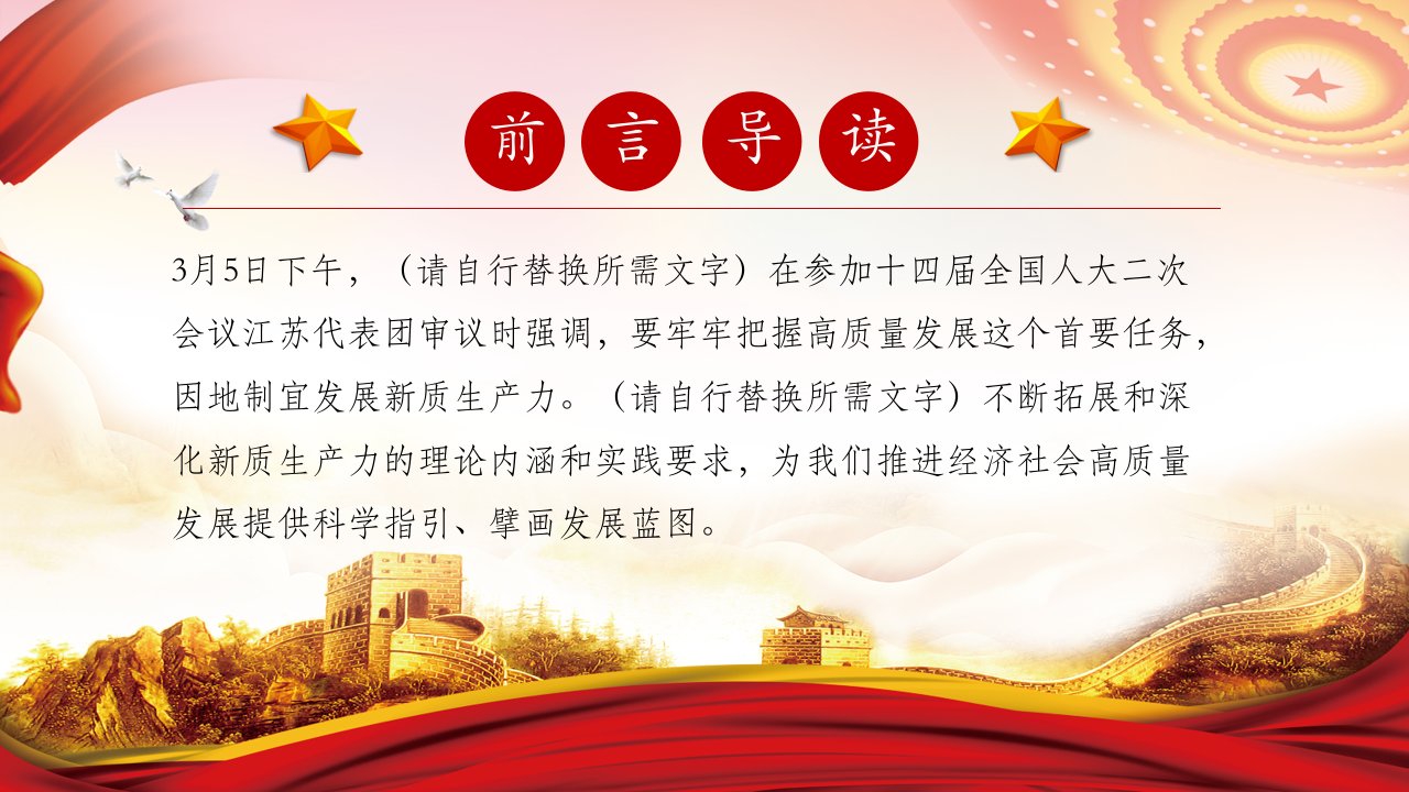 2024两会专题加快培育新质生产力推进经济社会高质量发展党课ppt模板(带内容)党支部党课ppt模板下载
