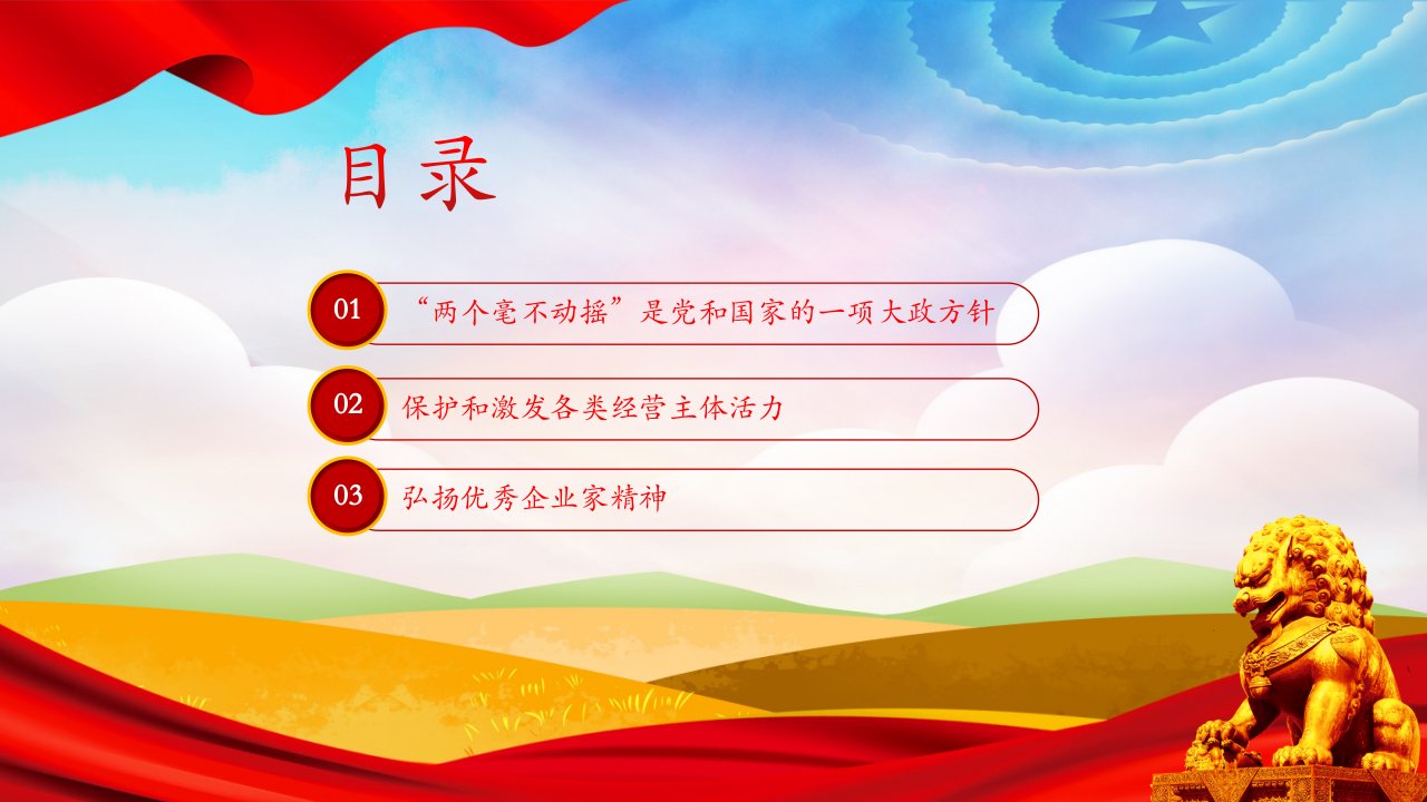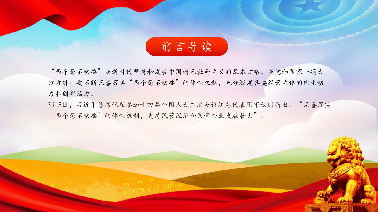 2024始终坚持两个毫不动摇毫不动摇巩固和发展公有制经济,毫不动摇鼓励、支持、引导非公有制经济发展党课ppt模板(含配套讲稿)党员干部学习党课课件