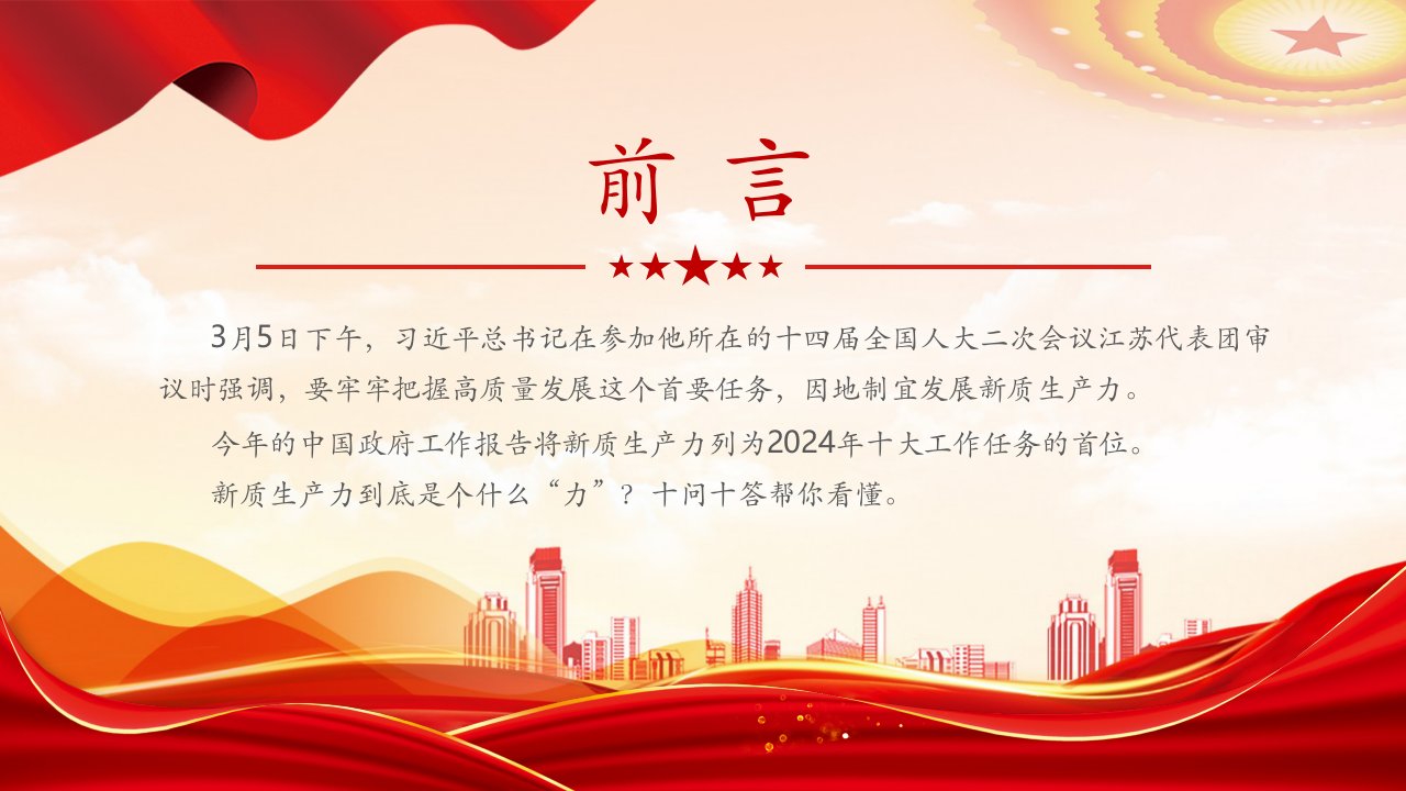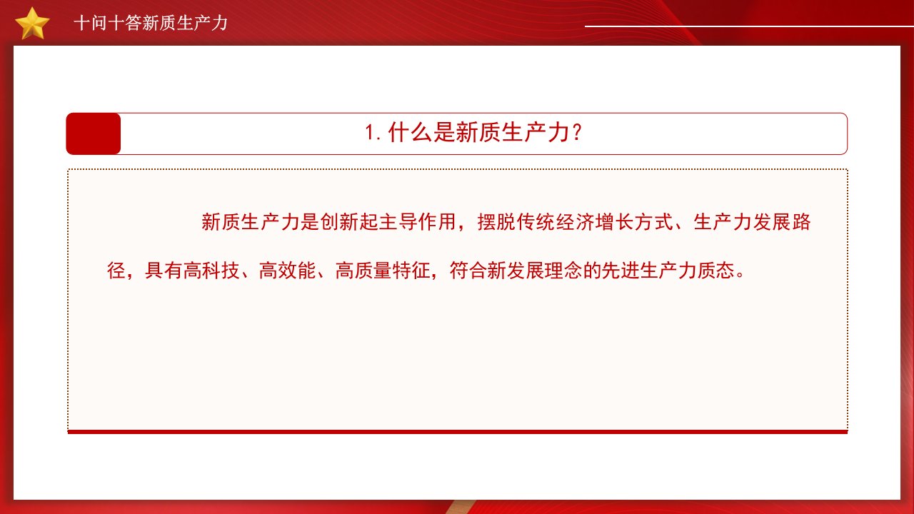 2024十问十答新质生产力推动经济高质量发展党课ppt模板(含配套讲稿)党员干部学习党课课件