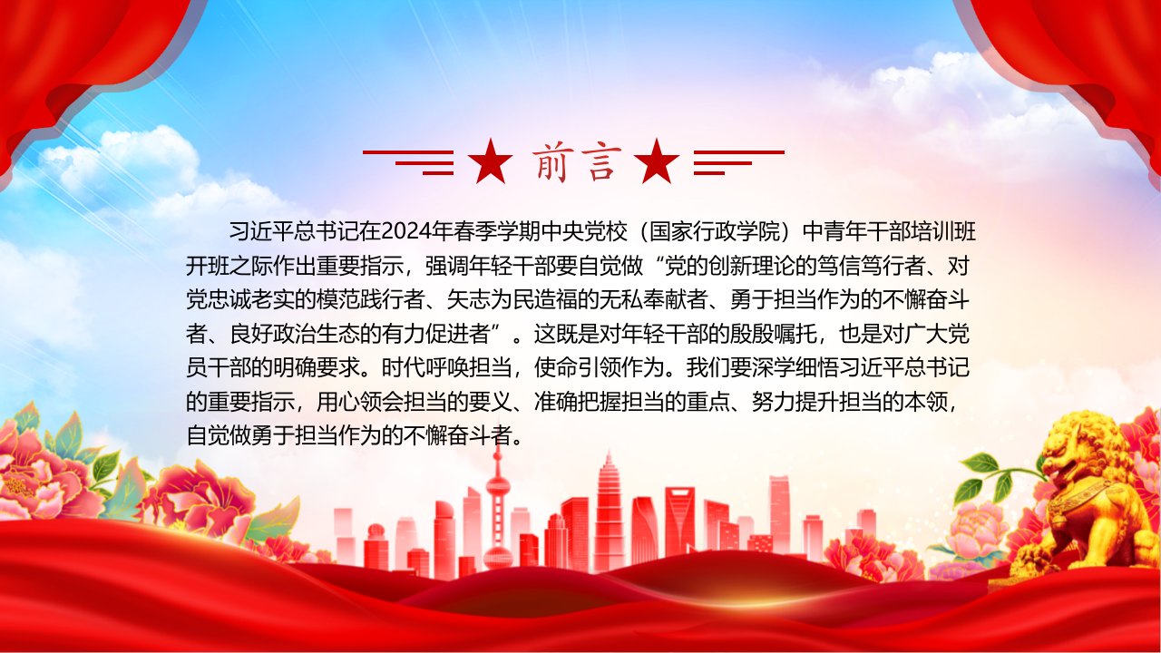 党课ppt,党课课件,党员干部,党课ppt模板,担当,年轻干部,青年干部,党支部,团支部,中青年干部培训班,党课,学习,干部培训班,ppt模板年轻干部要自觉做勇于担当作为的不懈奋斗者2024春季学期中青年干部培训班重要指示党课ppt模板(含配套讲稿)党支部团支部党员干部学习党课课件党课ppt,党课课件,党员干部,党课ppt模板,担当,年轻干部,青年干部,党支部,团支部,中青年干部培训班,党课,学习,干部培训班,ppt模板年轻干部要自觉做勇于担当作为的不懈奋斗者2024春季学期中青年干部培训班重要指示党课ppt模板(含配套讲稿)党支部团支部党员干部学习党课课件