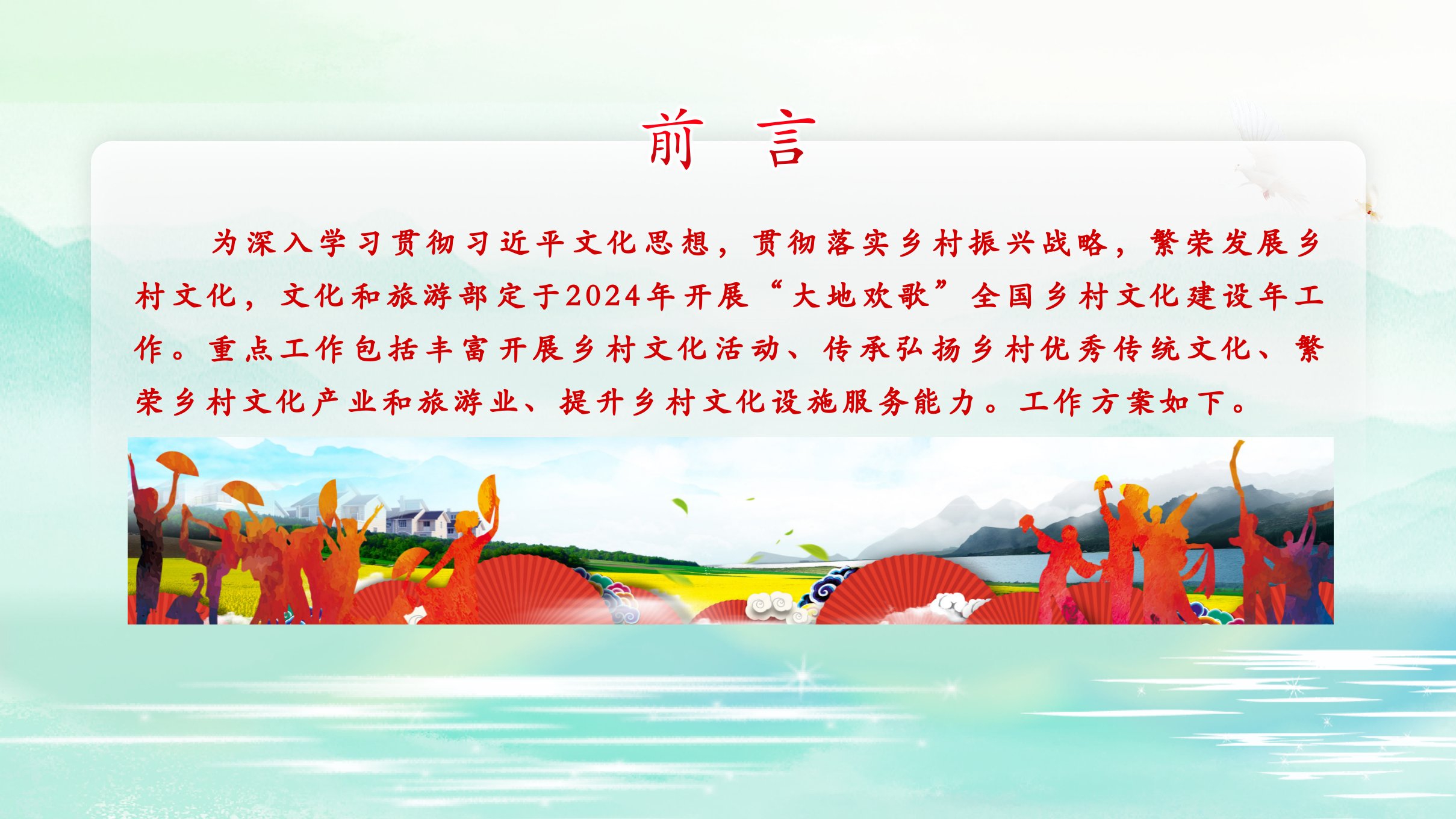 2024微党课“大地欢歌”全国乡村文化建设年工作方案党课ppt模板(带内容)讲党课ppt模板下载