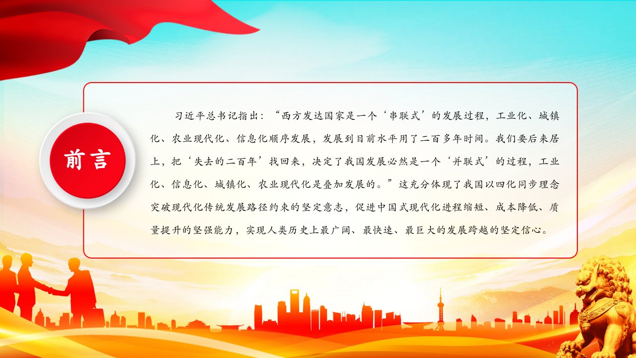 2024微党课以四化同步理念突破现代化传统发展路径约束的坚定意志党课ppt模板(含配套讲稿)党员干部学习党课课件