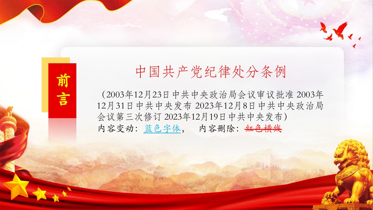 2024微党课中国共产党纪律处分条例党课ppt模板(带内容)党支部党课ppt模板下载2023新旧对照版