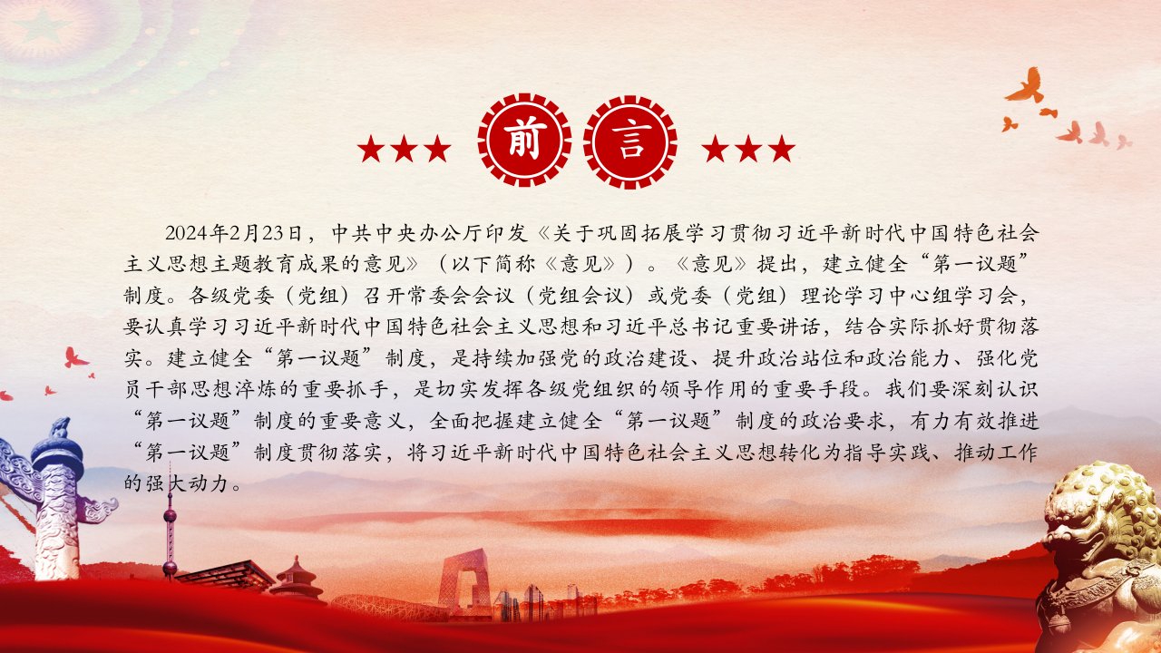 2024微党课自觉建立健全“第一议题”制度党课ppt模板(含配套讲稿)党员干部学习党课课件深刻认识“第一议题”制度的重要意义