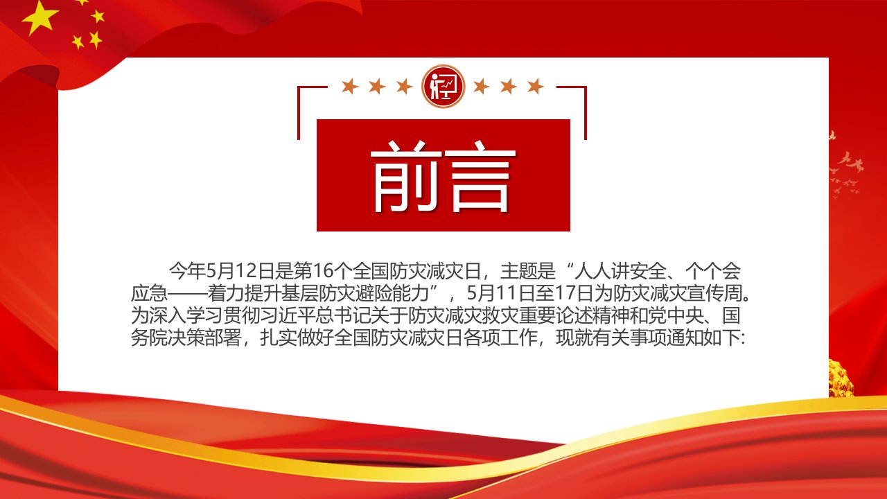 关于做好2024年全国防灾减灾日有关工作的通知党课ppt模板(带内容)党支部党课ppt模板下载