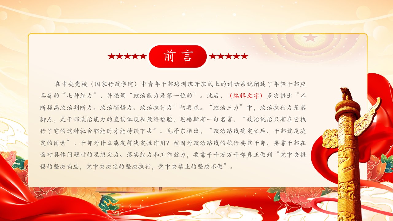 2024微党课必须筑牢思想根基年轻干部要不断提高政治执行力党课ppt模板(带内容)讲党课ppt模板下载