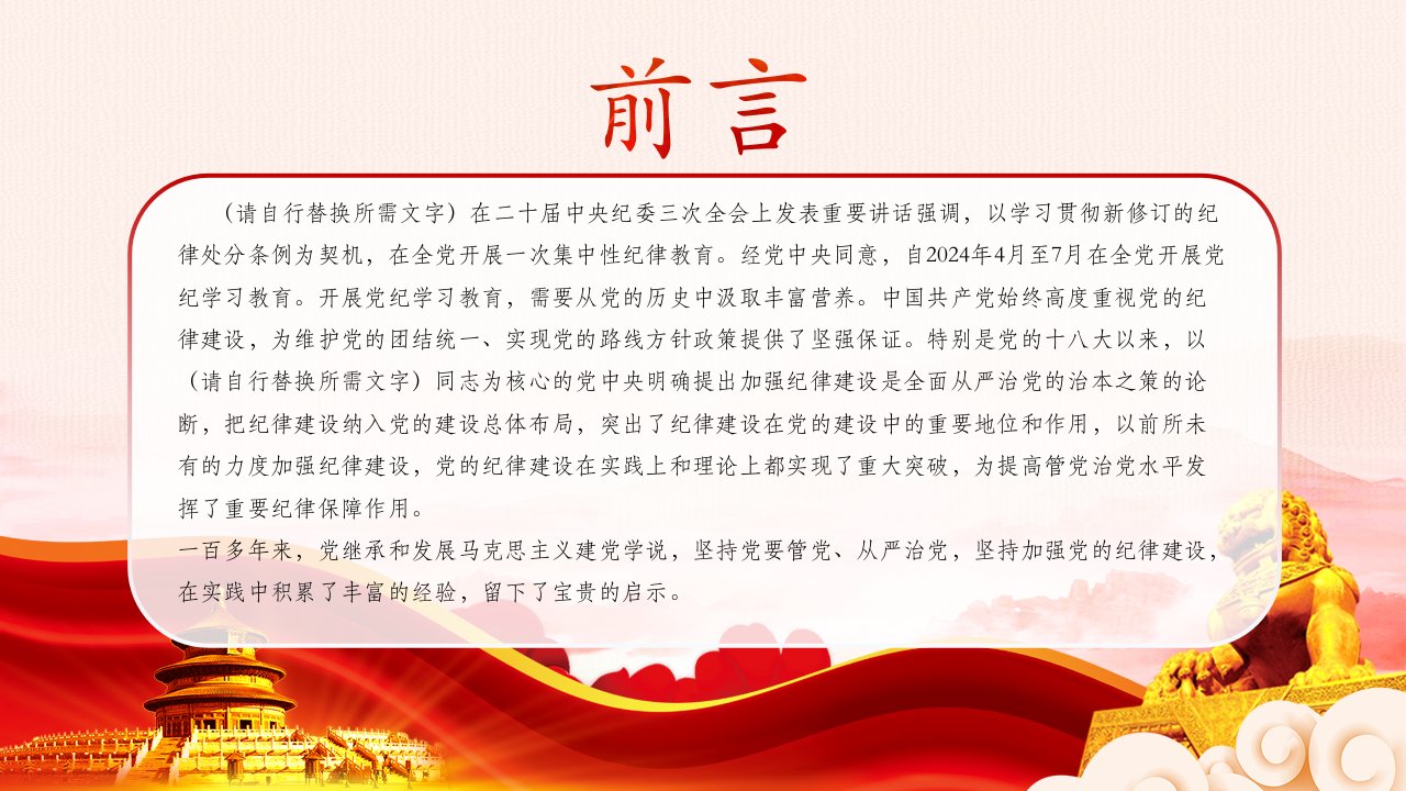2024微党课提高思想认识百年大党加强纪律建设的经验启示党课ppt模板(带内容)讲党课ppt模板下载