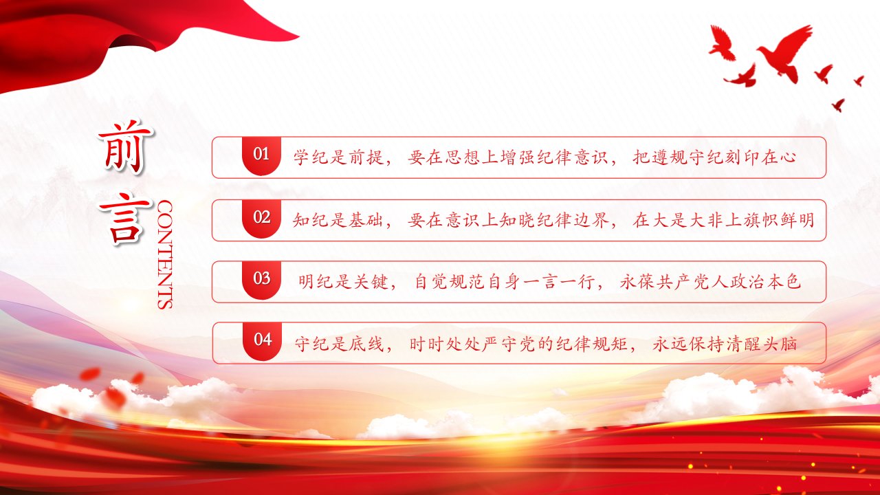 2024微党课学纪是前提做推动铁的纪律转化为日常习惯和自觉遵循的“排头兵”党课ppt模板(带内容)党支部党课ppt模板下载