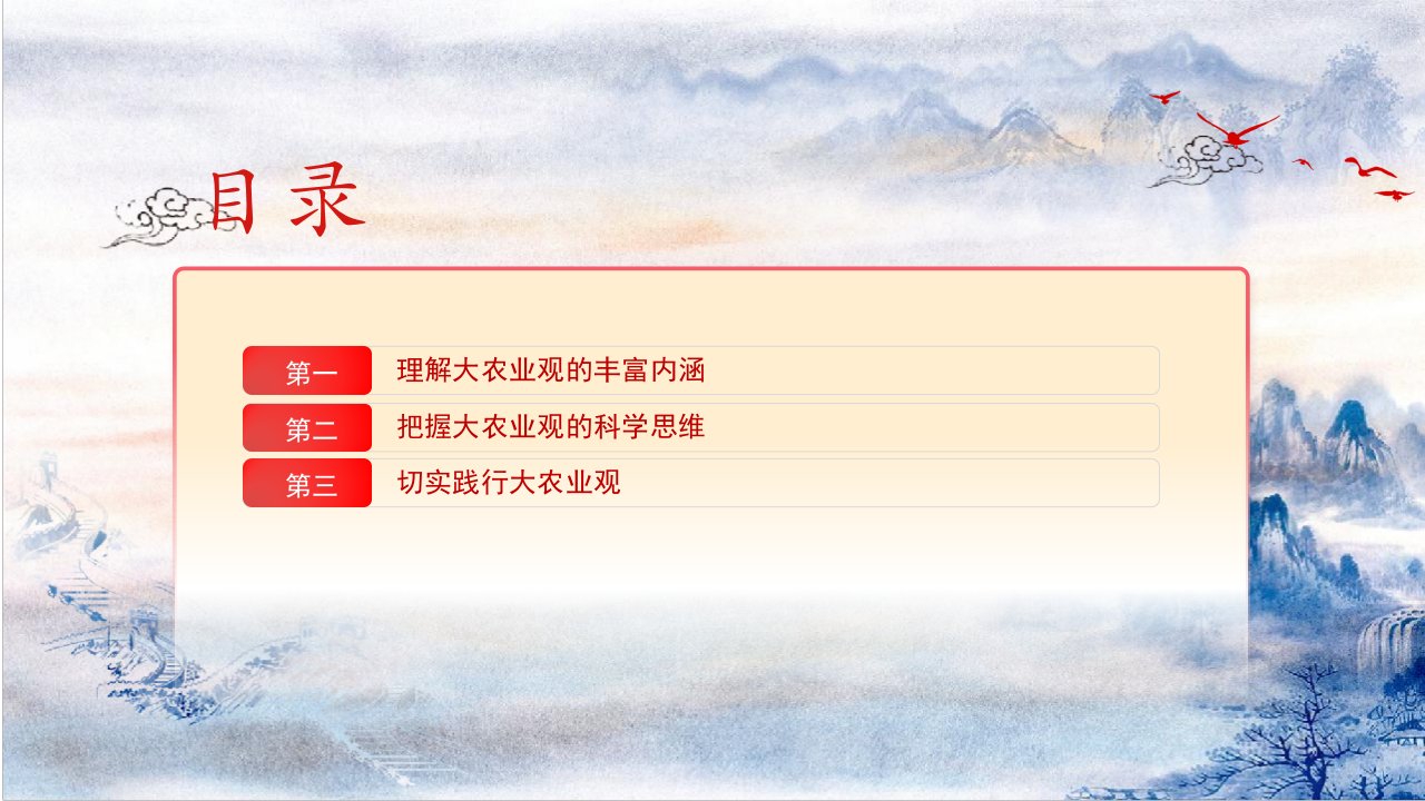推进乡村全面振兴2024牢固树立和切实践行大农业观党课ppt模板(含配套讲稿)党员干部学习党课课件