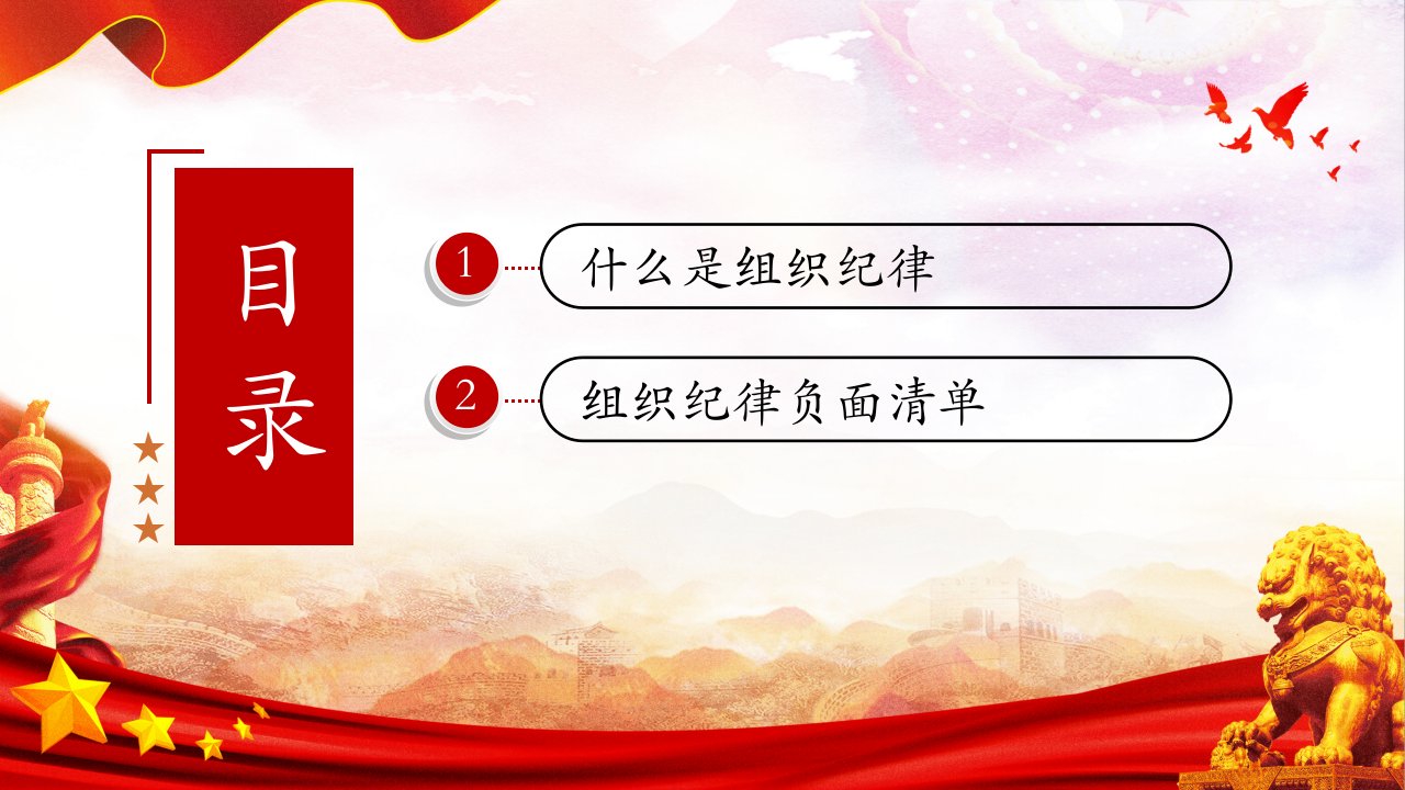 标题:2024微党课党的六大纪律之组织纪律课ppt模板(含配套讲稿)党员干部学习党课课件