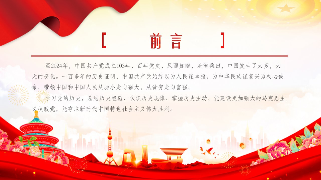 至2024年中国共产党成立103年学习党的历史,总结历史经验、认识历史规律、掌握历史主动党课ppt模板(带内容)讲党课ppt模板下载