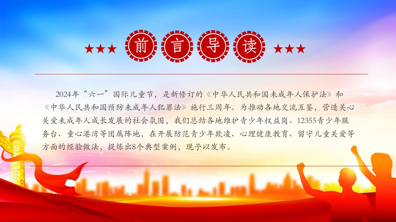 2024年“六一”国际儿童节8个关于《共青团开展未成年人权益保护工作典型案例》党课ppt模板(含配套讲稿)党员干部学习党课课件