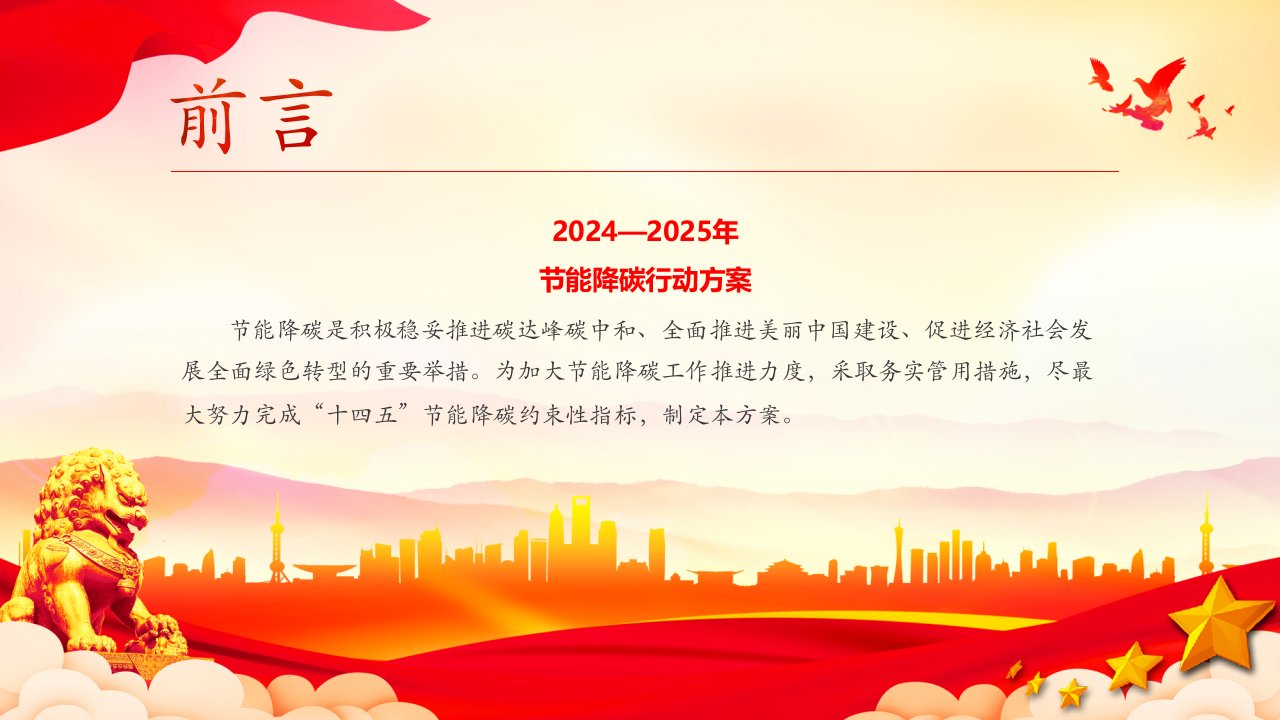 2024—2025年节能降碳行动,节能降碳是积极稳妥推进碳达峰碳中和、全面推进美丽中国建设、促进经济社会发展全面绿色转型的重要举措党课ppt模板(含配套讲稿)党员干部学习党课课件
