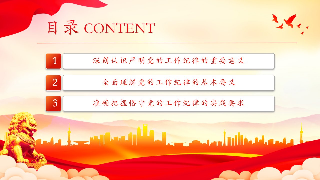 2024微党课工作纪律是党的六大纪律之一严守党的工作纪律,既要从思想上深刻认识其重要意义,将纪律的约束内容内化为开展工作的基本原则党课ppt模板(带内容)讲党课ppt模板下载
