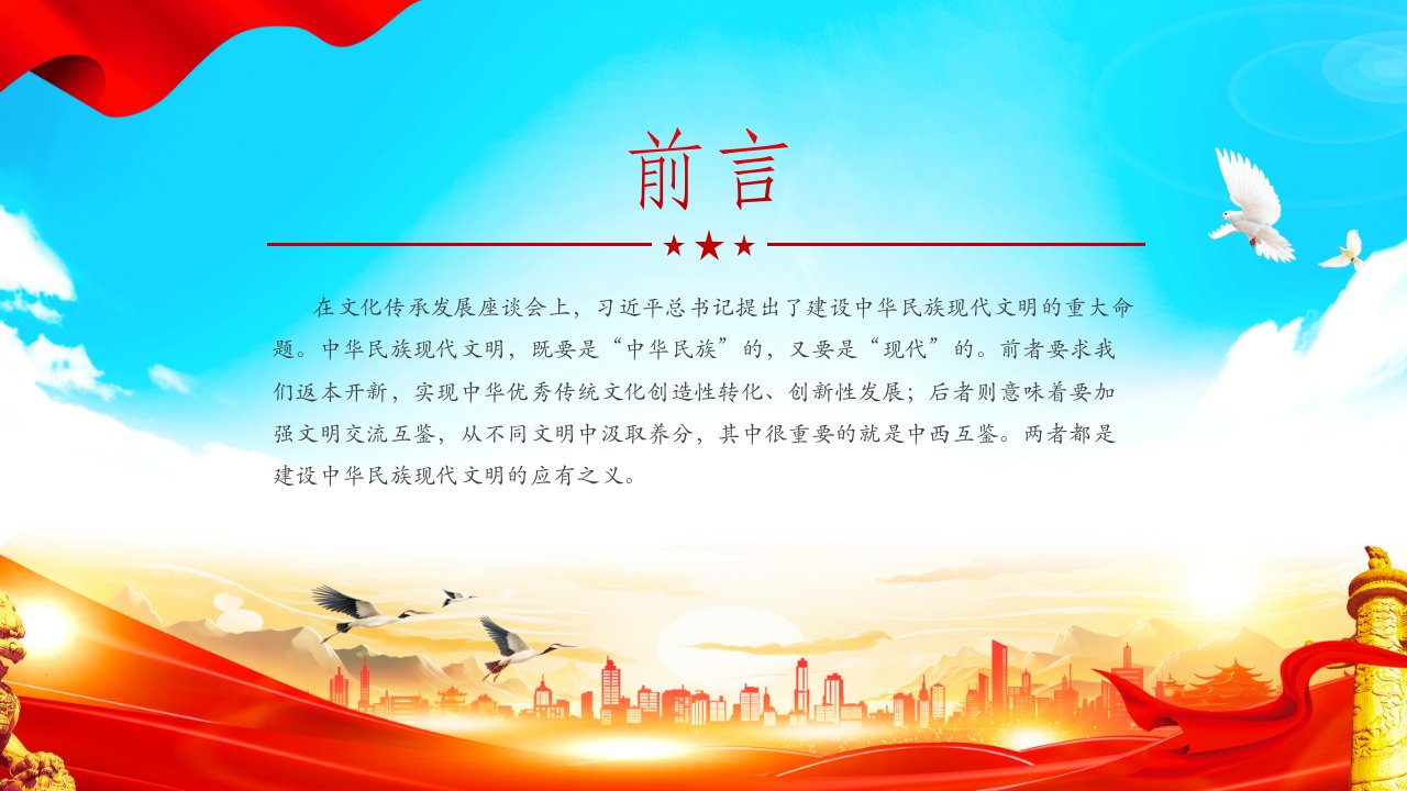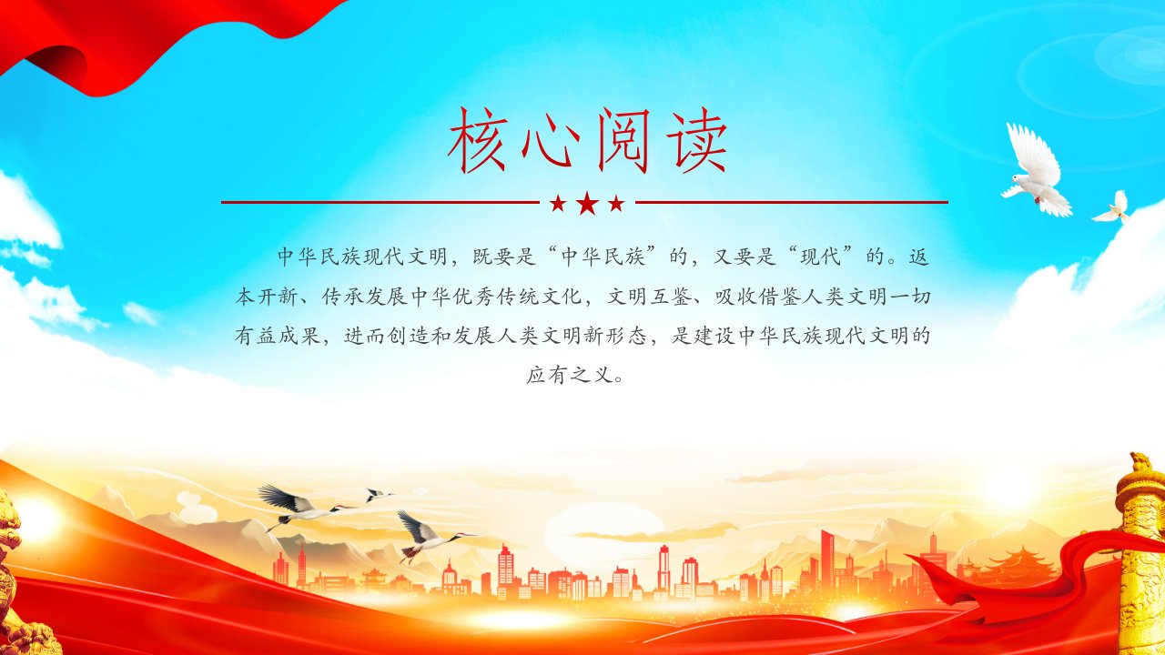2024微党课返本开新、传承发展中华优秀传统文化,文明互鉴、吸收借鉴人类文明一切有益成果,进而创造和发展人类文明新形态,是建设中华民族现代文明的应有之义党课ppt模板(含配套讲稿)党员干部学习党课课件