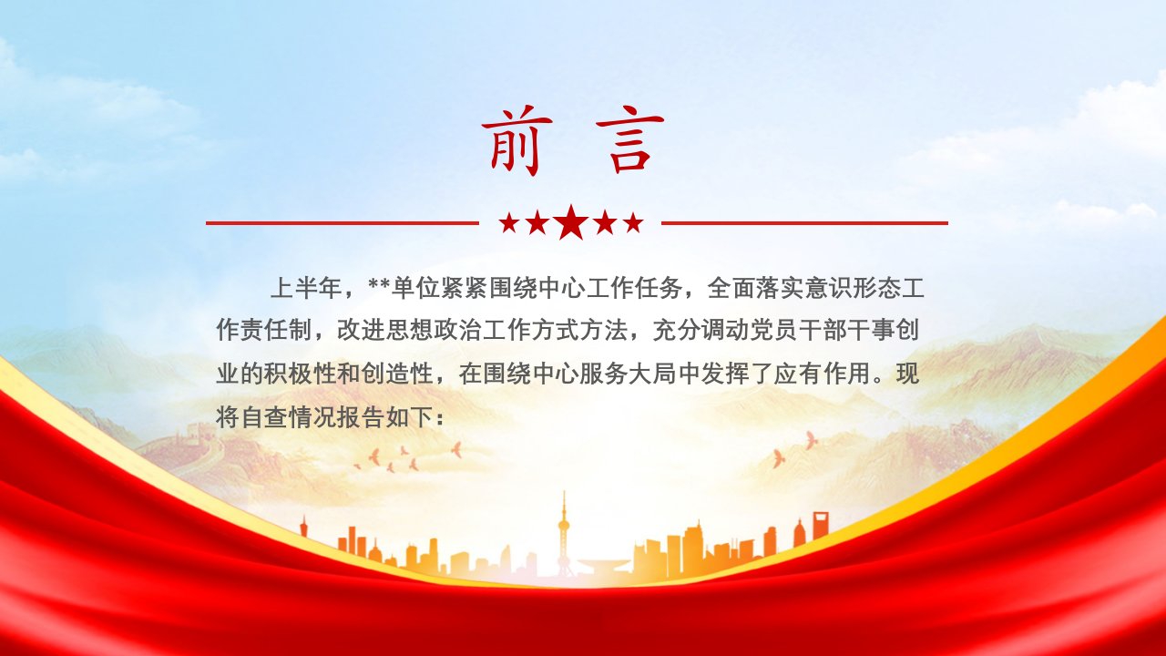 2024党员干部基层上半年意识形态领域工作情况自查报告党课ppt模板(含配套讲稿)党员干部学习党课课件