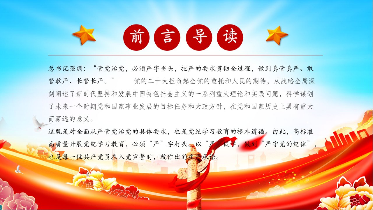 2024微党课党的二十大担负起全党的重托和人民的期待,管党治党,必须严字当头,把严的要求贯彻全过程,做到真管真严、敢管敢严、长管长严党课ppt模板(带内容)讲党课ppt模板下载