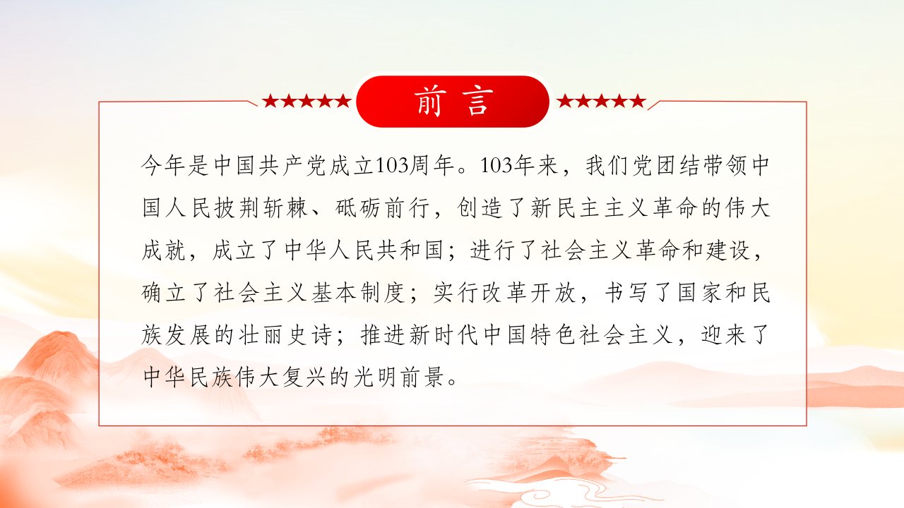 党课ppt,党课课件,使命,党员干部,党课ppt模板,新时代,周年,中国共产党,中国特色,中华民族,凝心聚力,党课,学习,中国特色社会主义,社会主义,ppt模板锤炼党性践使命凝心聚力葆初心2024建党节中国共产党成立103周年推进新时代中国特色社会主义,迎来了中华民族伟大复兴的光明前景党课ppt模板(含配套讲稿)党员干部学习党课课件党课ppt,党课课件,使命,党员干部,党课ppt模板,新时代,周年,中国共产党,中国特色,中华民族,凝心聚力,党课,学习,中国特色社会主义,社会主义,ppt模板锤炼党性践使命凝心聚力葆初心2024建党节中国共产党成立103周年推进新时代中国特色社会主义,迎来了中华民族伟大复兴的光明前景党课ppt模板(含配套讲稿)党员干部学习党课课件