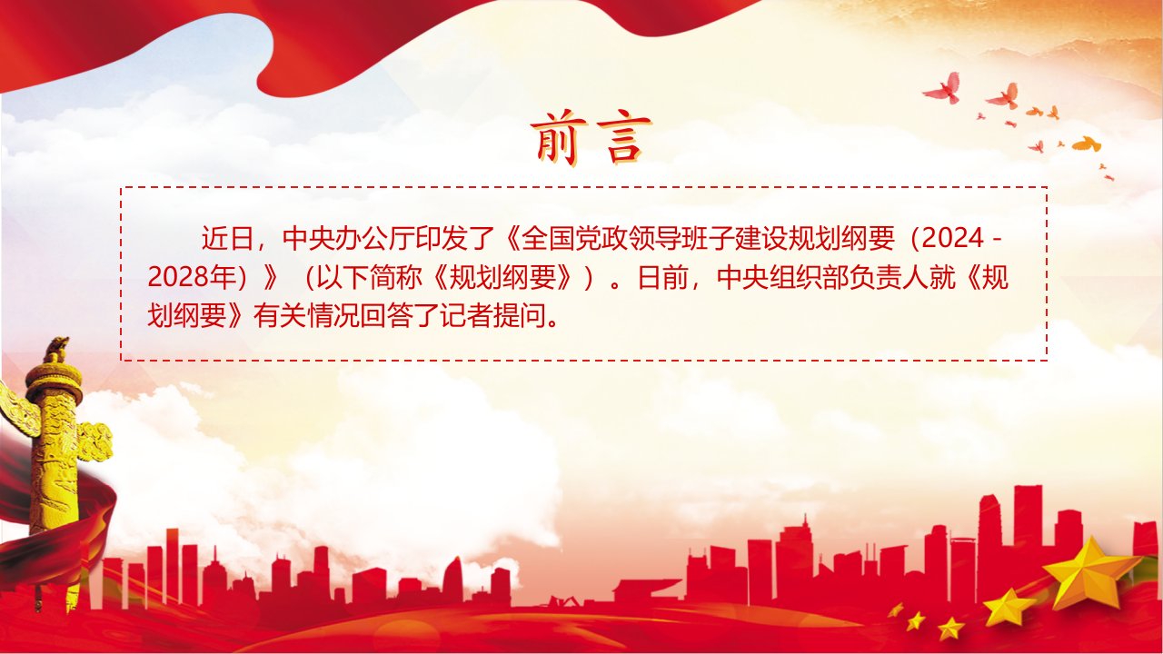要点解读全国党政领导班子建设规划纲要(2024-2028年)党课ppt模板(含配套讲稿)党员干部学习党课课件