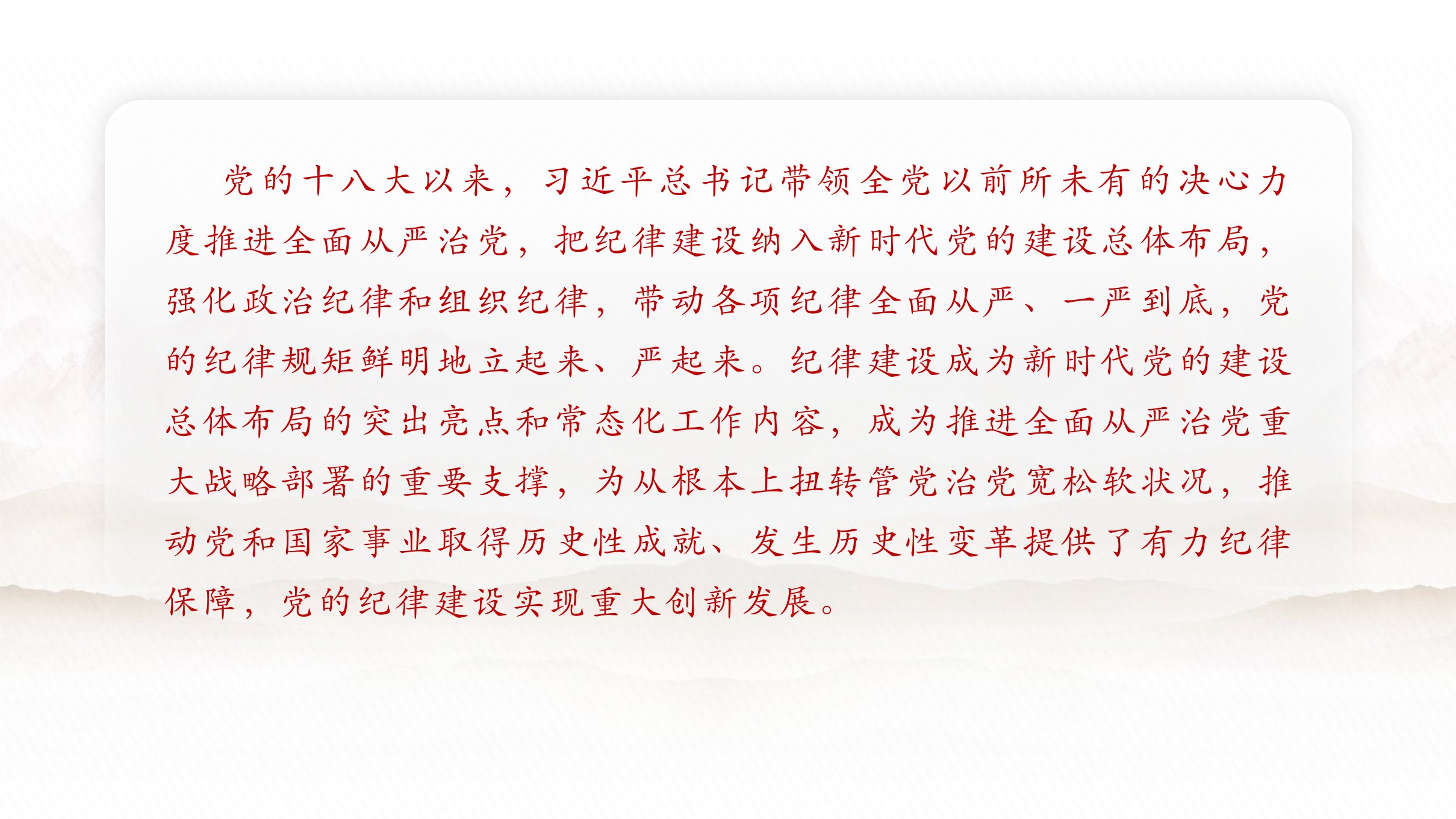2024微党课深刻把握新时代党的纪律建设的重大理论、实践和制度创新健全完善党规党纪制度体系(带内容)党支部党课ppt模板下载