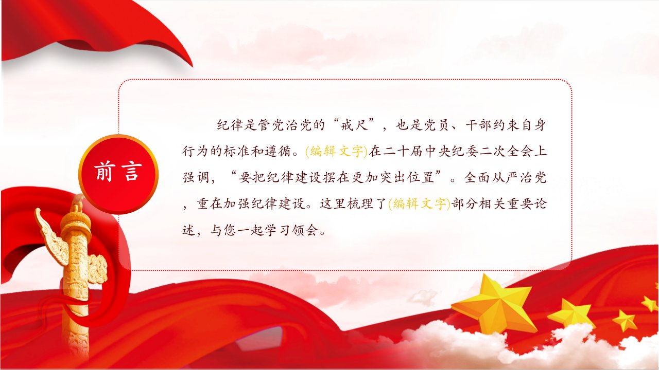 党课ppt,党课ppt模板,讲党课ppt,二十届,中央纪委,二次全会,二十届中央纪委二次全会,党课,党课ppt模板下载,是管党治党,ppt模板2024微党课纪律是管党治党的“戒尺”,也是党员、干部约束自身行为的标准和遵循,总书记在二十届中央纪委二次全会上强调,“要把纪律建设摆在更加突出位置”(带内容)讲党课ppt模板下载党课ppt,党课ppt模板,讲党课ppt,二十届,中央纪委,二次全会,二十届中央纪委二次全会,党课,党课ppt模板下载,是管党治党,ppt模板2024微党课纪律是管党治党的“戒尺”,也是党员、干部约束自身行为的标准和遵循,总书记在二十届中央纪委二次全会上强调,“要把纪律建设摆在更加突出位置”(带内容)讲党课ppt模板下载