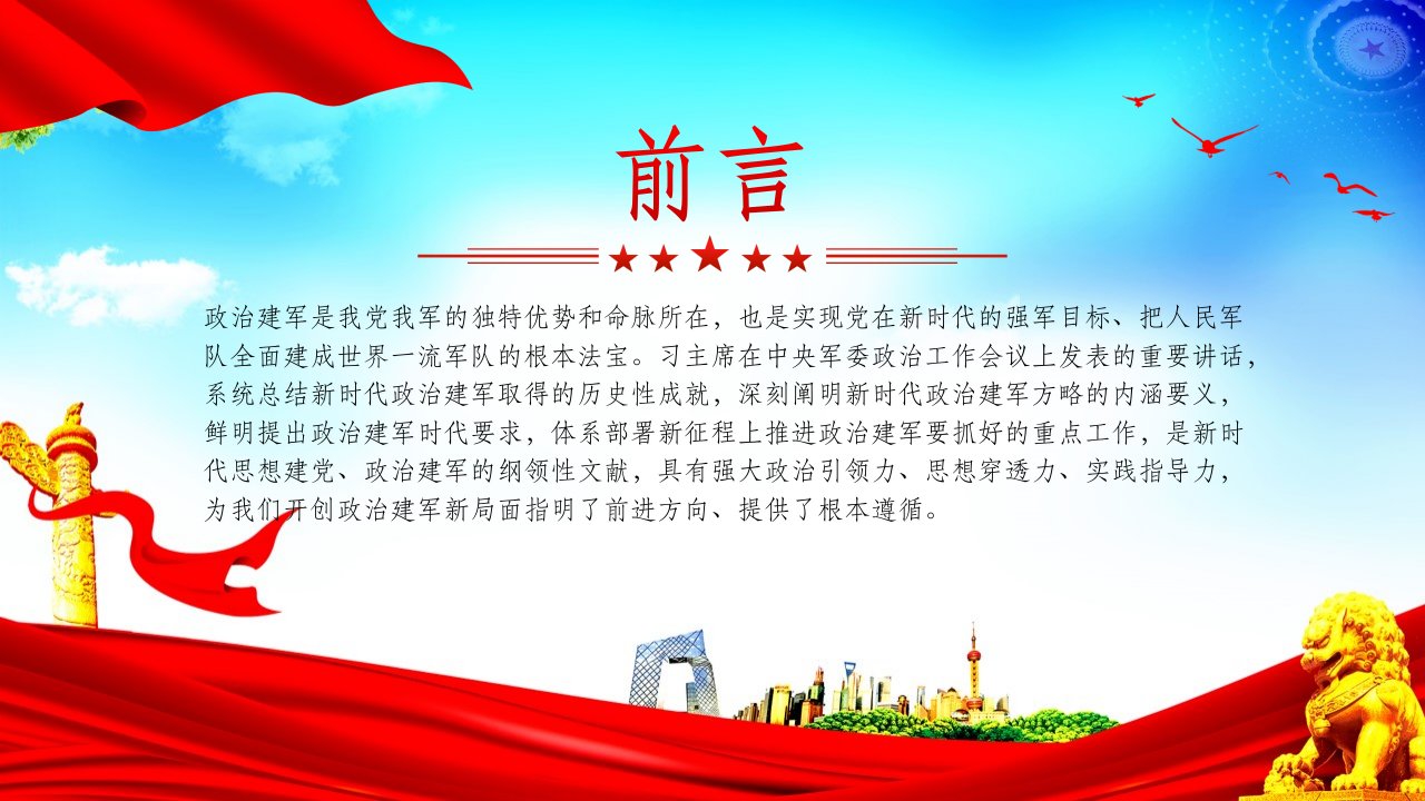 党课ppt,党课课件,党员干部,党课ppt模板,新时代,人民,党课,学习,人民军队,前进方向,ppt模板2024微党课政治建军是我党我军的独特优势和命脉所在,也是实现党在新时代的强军目标、把人民军队全面建成世界一流军队的根本法宝为我们开创政治建军新局面指明了前进方向、提供了根本遵循党课ppt模板(含配套讲稿)党员干部学习党课课件党课ppt,党课课件,党员干部,党课ppt模板,新时代,人民,党课,学习,人民军队,前进方向,ppt模板2024微党课政治建军是我党我军的独特优势和命脉所在,也是实现党在新时代的强军目标、把人民军队全面建成世界一流军队的根本法宝为我们开创政治建军新局面指明了前进方向、提供了根本遵循党课ppt模板(含配套讲稿)党员干部学习党课课件