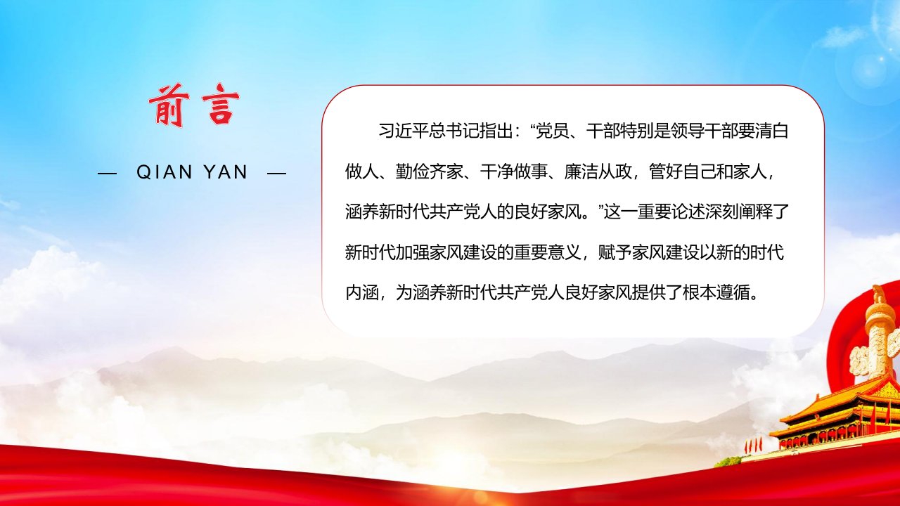 党课ppt,党课课件,党员干部,廉洁,党课ppt模板,新时代,廉洁从政,领导干部,党课,学习,共产党人,ppt模板2024微党课涵养新时代共产党人的良好家风总书记指出:“党员、干部特别是领导干部要清白做人、勤俭齐家、干净做事、廉洁从政,管好自己和家人,涵养新时代共产党人的良好家风党课ppt模板(含配套讲稿)党员干部学习党课课件党课ppt,党课课件,党员干部,廉洁,党课ppt模板,新时代,廉洁从政,领导干部,党课,学习,共产党人,ppt模板2024微党课涵养新时代共产党人的良好家风总书记指出:“党员、干部特别是领导干部要清白做人、勤俭齐家、干净做事、廉洁从政,管好自己和家人,涵养新时代共产党人的良好家风党课ppt模板(含配套讲稿)党员干部学习党课课件