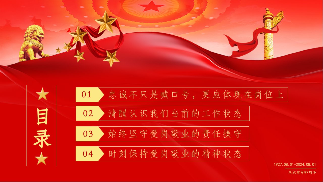 党课ppt,党课ppt模板,讲党课ppt,忠诚,责任,党课,爱岗敬业,党课ppt模板下载,ppt模板2024微党课建军扬我军威忠诚不只是喊口号,更应体现在岗位上始终坚守爱岗敬业的责任操守(带内容)讲党课ppt模板下载党课ppt,党课ppt模板,讲党课ppt,忠诚,责任,党课,爱岗敬业,党课ppt模板下载,ppt模板2024微党课建军扬我军威忠诚不只是喊口号,更应体现在岗位上始终坚守爱岗敬业的责任操守(带内容)讲党课ppt模板下载