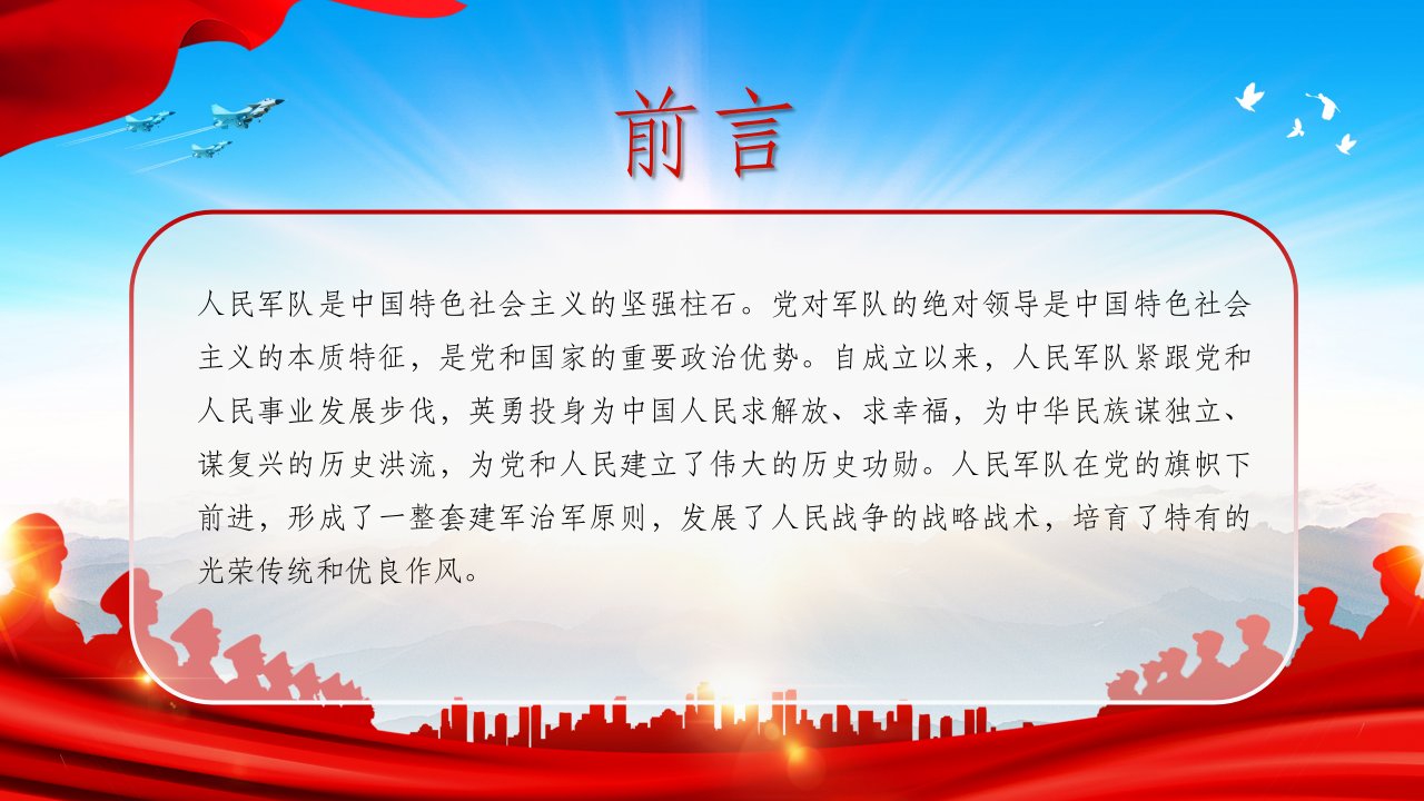 党课ppt,教育培训,思想,党课ppt模板,建军节,讲党课ppt,人民,八一建军节,教育,八一,发展,党课,人民军队,党课ppt模板下载,思想教育,ppt模板,专题2024微党课八一建军节部队军队思想教育培训专题人民军队在党的旗帜下前进,形成了一整套建军治军原则,发展了人民战争的战略战术,培育了特有的光荣传统和优良作风(带内容)讲党课ppt模板下载党课ppt,教育培训,思想,党课ppt模板,建军节,讲党课ppt,人民,八一建军节,教育,八一,发展,党课,人民军队,党课ppt模板下载,思想教育,ppt模板,专题2024微党课八一建军节部队军队思想教育培训专题人民军队在党的旗帜下前进,形成了一整套建军治军原则,发展了人民战争的战略战术,培育了特有的光荣传统和优良作风(带内容)讲党课ppt模板下载