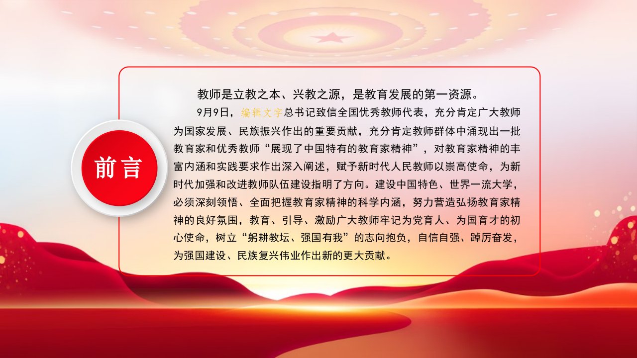 2024微党课弘扬教育家精神建设中国特色世界一流大学树立“躬耕教坛、强国有我”的志向抱负,自信自强、踔厉奋发,为强国建设、民族复兴伟业作出新的更大贡献(带内容)讲党课ppt模板下载