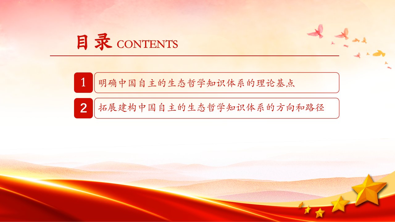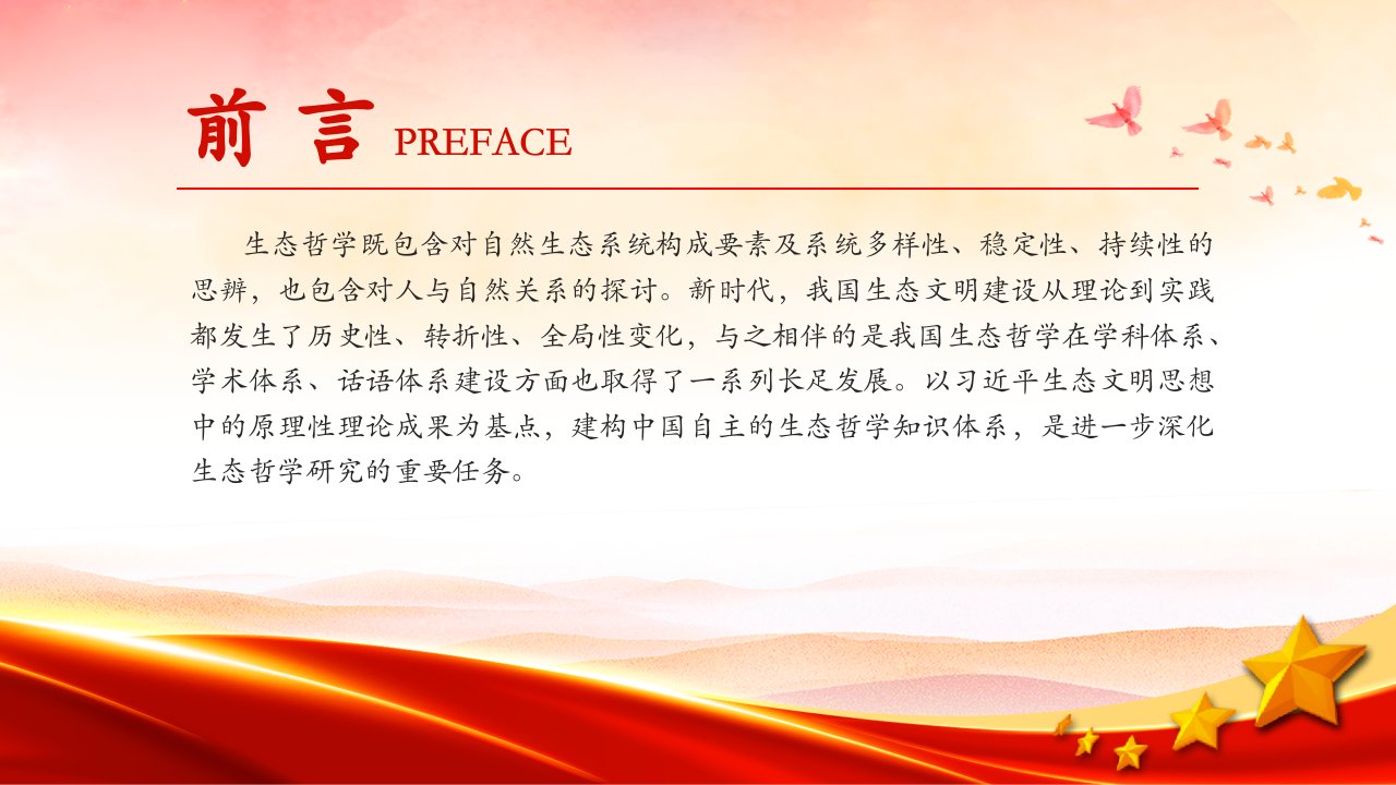 2024微党课建构中国自主的生态哲学知识体系生态哲学既包含对自然生态系统构成要素及系统多样性、稳定性、持续性的思辨,也包含对人与自然关系的探讨党课ppt模板(含配套讲稿)党员干部学习党课课件