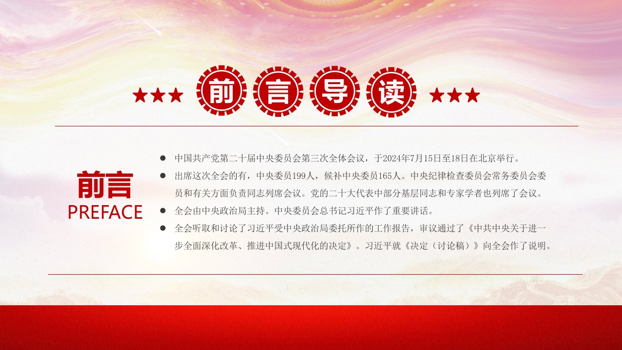 党课ppt,党课ppt模板,现代化,讲党课ppt,中国共产党,工作报告,报告,工作,决定,二十届,党课,中央委员会,中央政治局,深化改革,全体会议,中共中央,党课ppt模板下载,ppt模板中国共产党第二十届中央委员会第三次全体会议,于2024年7月15日至18日在北京举行全会听取和讨论了习近平受中央政治局委托所作的工作报告,审议通过了《中共中央关于进一步全面深化改革、推进中国式现代化的决定》。习近平就《决定(讨论稿)》向全会作了说明(带内容)讲党课ppt模板下载党课ppt,党课ppt模板,现代化,讲党课ppt,中国共产党,工作报告,报告,工作,决定,二十届,党课,中央委员会,中央政治局,深化改革,全体会议,中共中央,党课ppt模板下载,ppt模板中国共产党第二十届中央委员会第三次全体会议,于2024年7月15日至18日在北京举行全会听取和讨论了习近平受中央政治局委托所作的工作报告,审议通过了《中共中央关于进一步全面深化改革、推进中国式现代化的决定》。习近平就《决定(讨论稿)》向全会作了说明(带内容)讲党课ppt模板下载