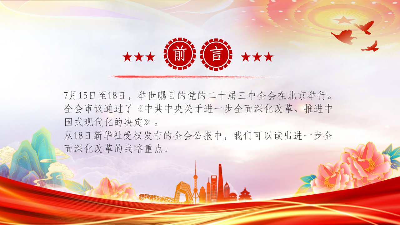 党课ppt,党课ppt模板,现代化,讲党课ppt,决定,二十届,党课,深化改革,中共中央,党课ppt模板下载,ppt模板2024微党课从三中全会公报读懂新一轮改革战略重点7月15日至18日,举世瞩目的党的二十届三中全会在北京举行。全会审议通过了《中共中央关于进一步全面深化改革、推进中国式现代化的决定》(带内容)讲党课ppt模板下载党课ppt,党课ppt模板,现代化,讲党课ppt,决定,二十届,党课,深化改革,中共中央,党课ppt模板下载,ppt模板2024微党课从三中全会公报读懂新一轮改革战略重点7月15日至18日,举世瞩目的党的二十届三中全会在北京举行。全会审议通过了《中共中央关于进一步全面深化改革、推进中国式现代化的决定》(带内容)讲党课ppt模板下载