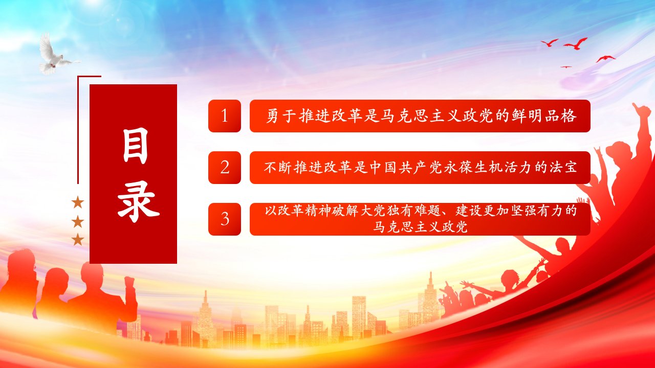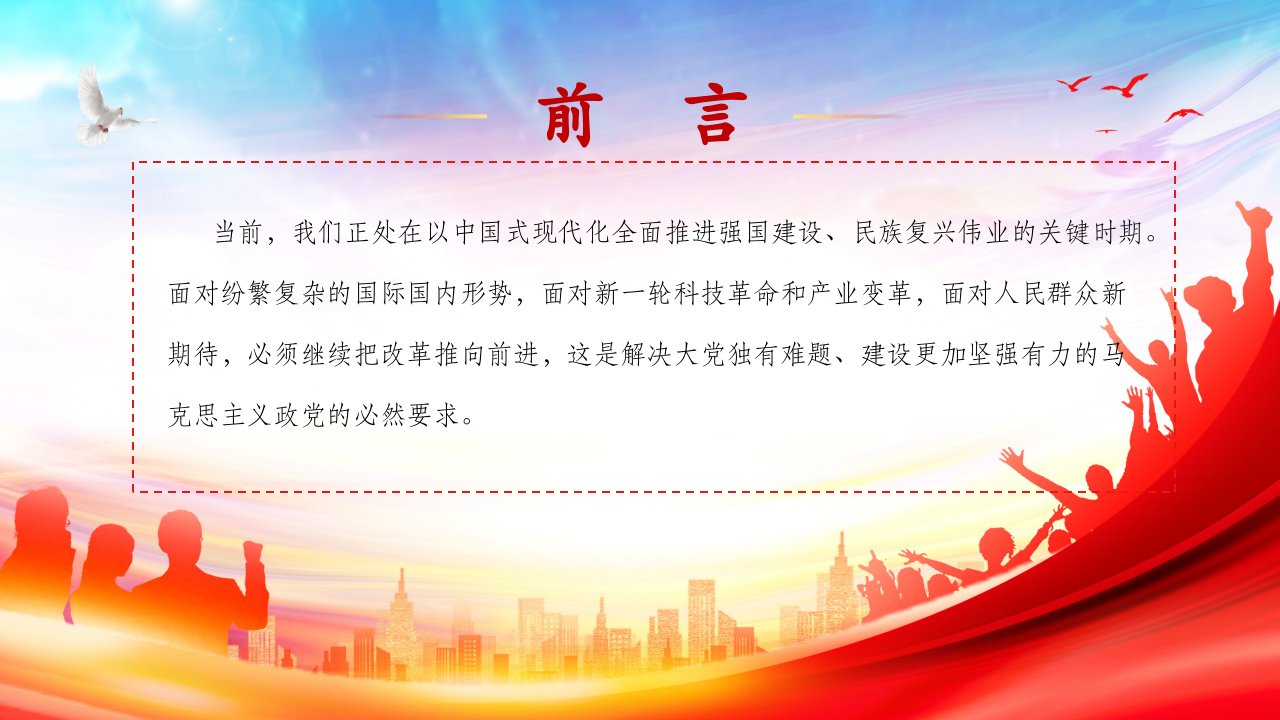 2024微党课建设更加坚强有力的马克思主义政党推进改革精神(带内容)讲党课ppt模板下载