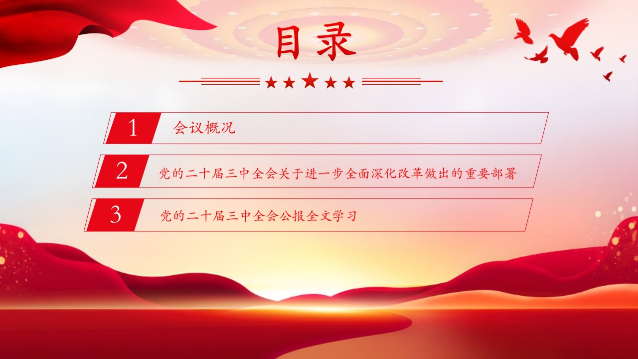 2024微党课党的二十届三中全会三大重要部署与公报简明学习(带内容)讲党课ppt模板下载
