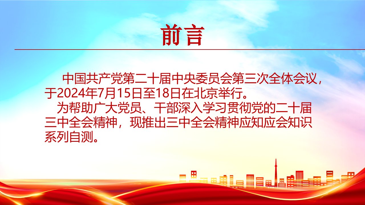2024微党课党的二十届三中全会精神应知应会知识系列自测(带内容)党支部党课ppt模板下载