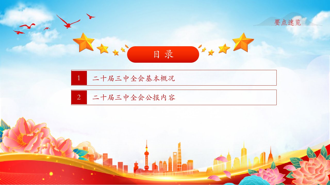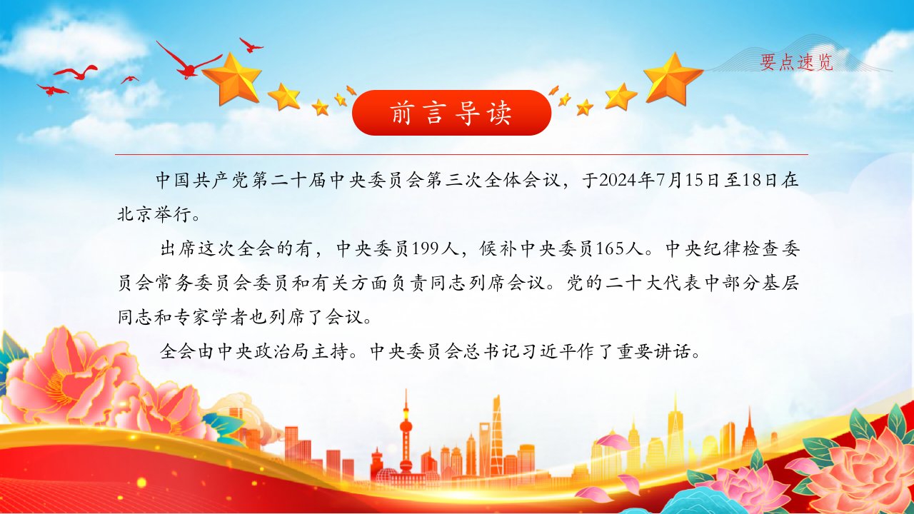 2024微党课党的二十届三中全会公报要点速览推进中国式现代化的决定(带内容)党支部党课ppt模板下载