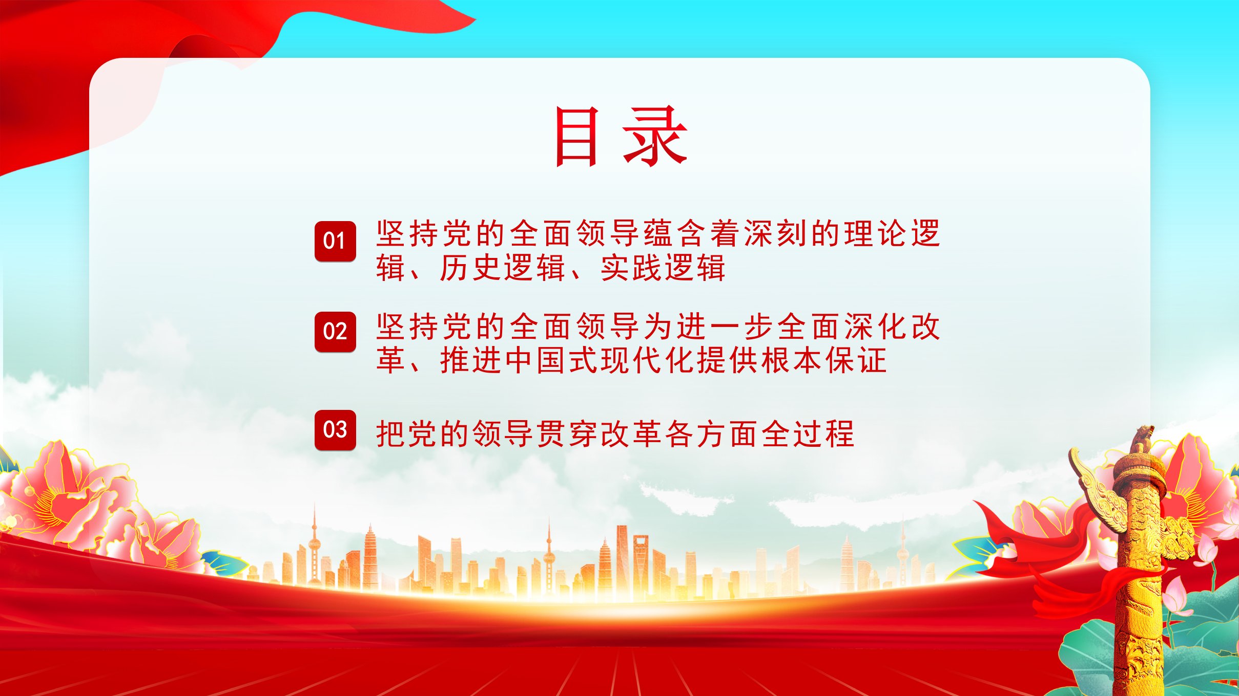 2024微党课进一步全面深化改革必须坚持党的全面领导党课ppt模板(带内容)党支部党课ppt模板下载