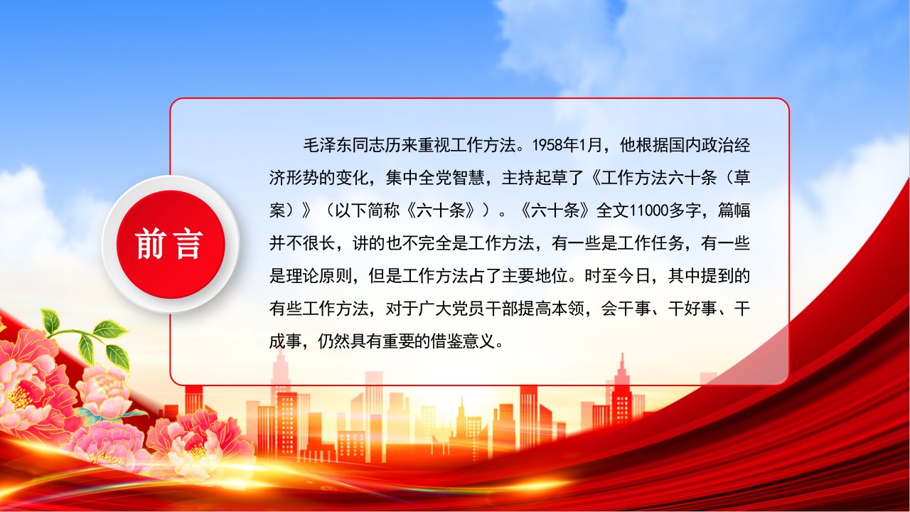 2024微党课重温毛泽东同志《工作方法六十条(草案)》治国理政专辑ppt党课ppt模板(带内容)党支部党课ppt模板下载