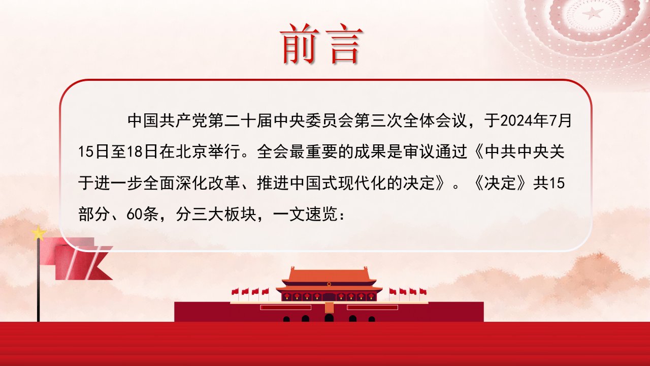 2024微党课二十届三中全会《决定》60条要点党课ppt模板(带内容)党支部党课ppt模板下载